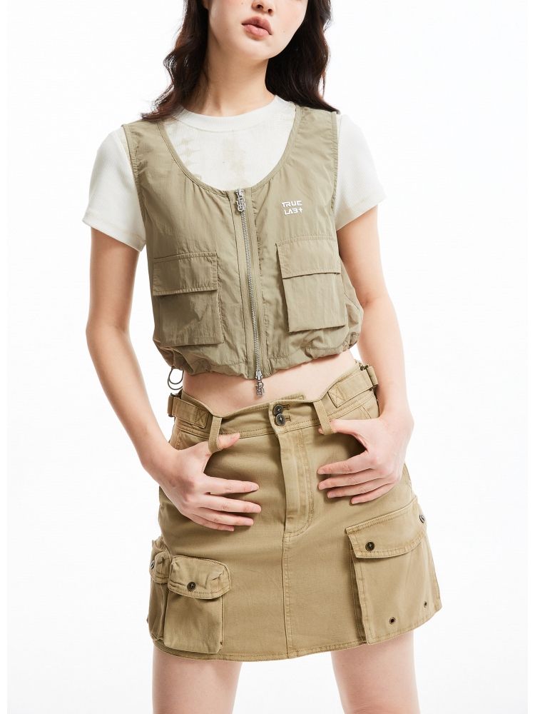 商品名称:【简约休闲】春季拉链抽绳网面短款外套女 682714