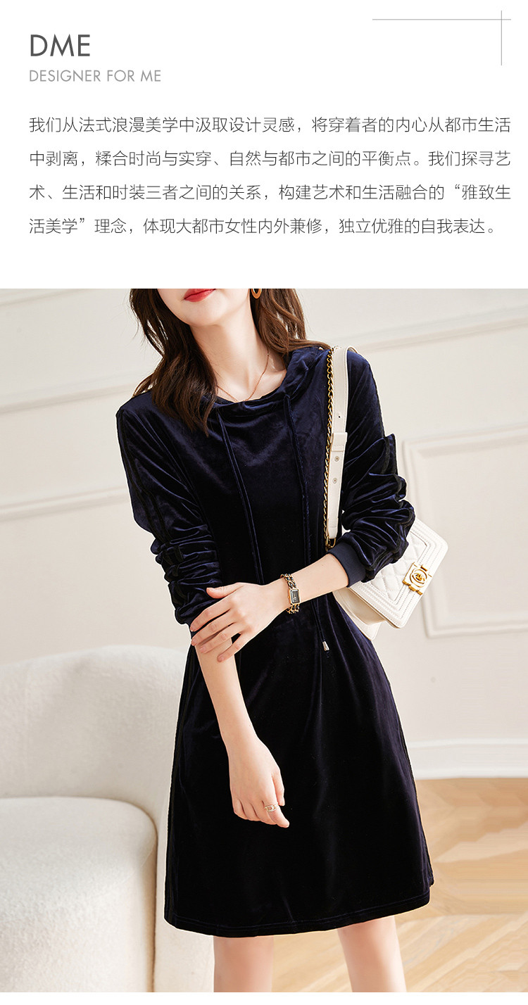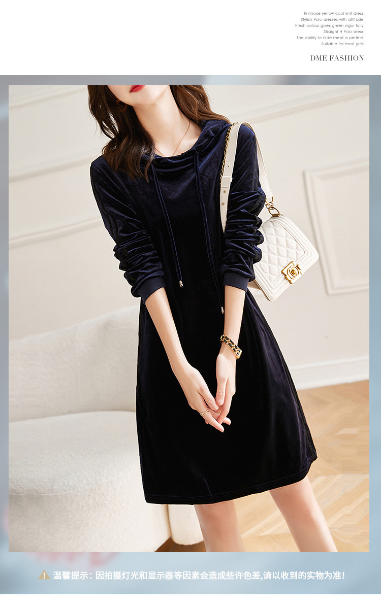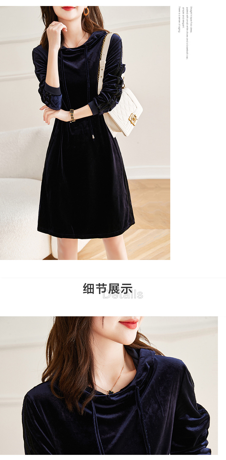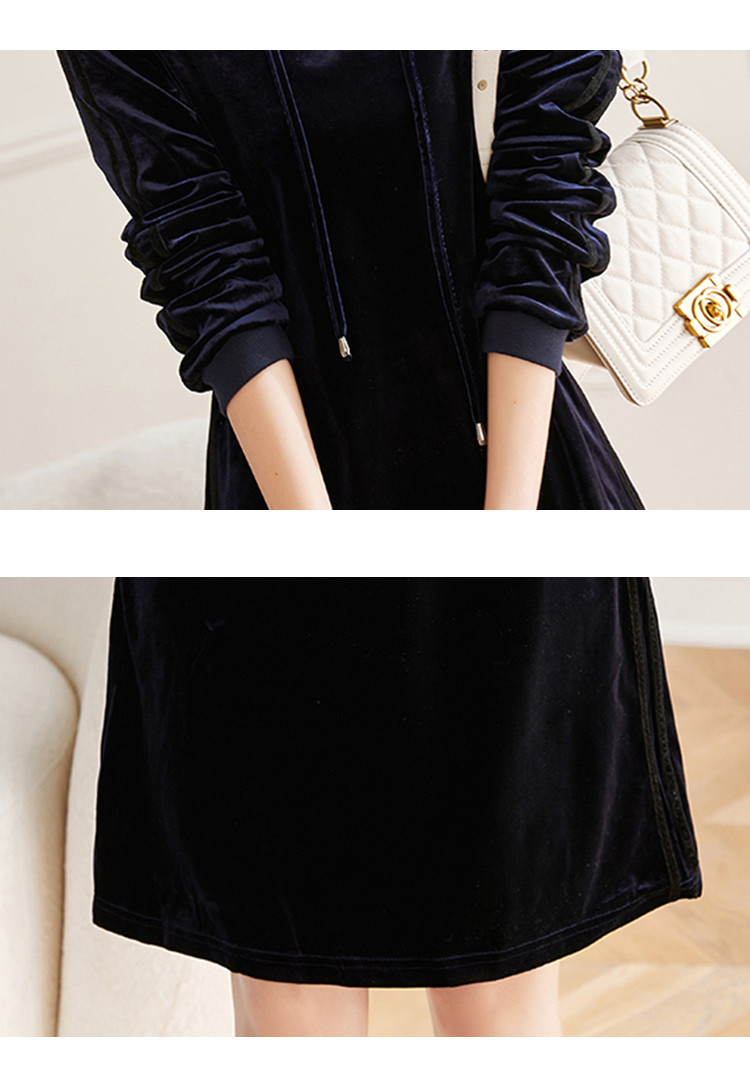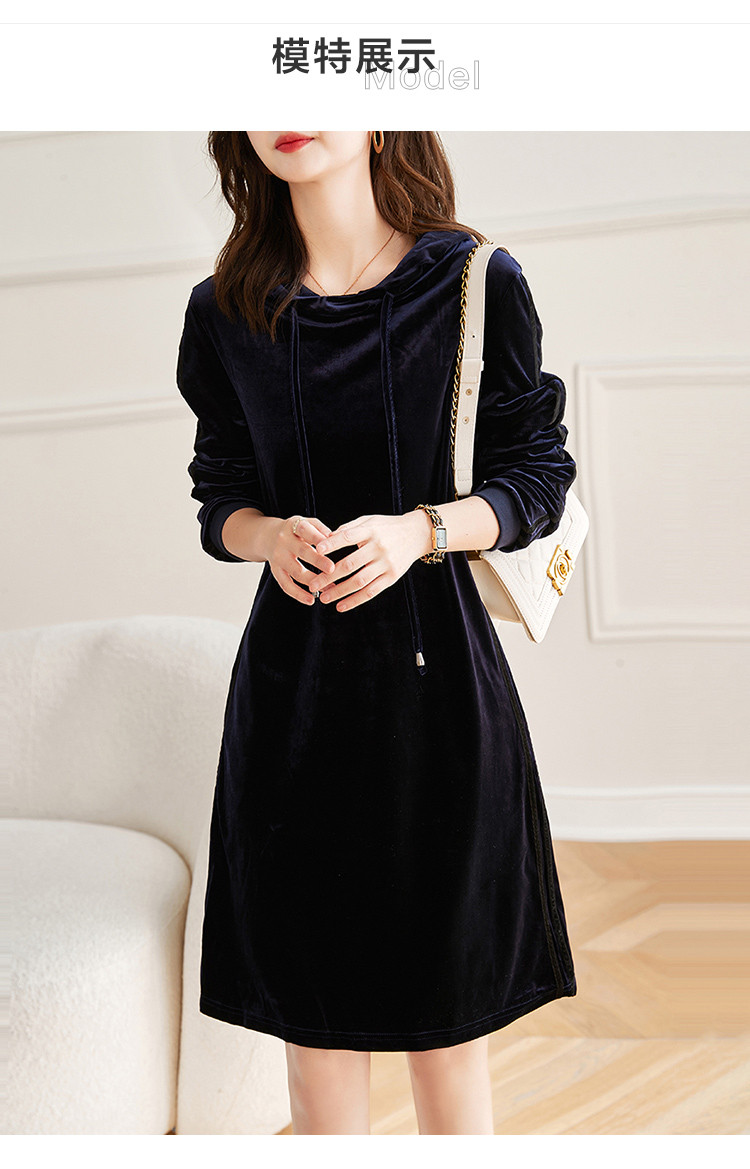 商品名称:【丝绒卫衣裙】春秋连帽长袖裙子a字微弹连衣裙女中长款 846721