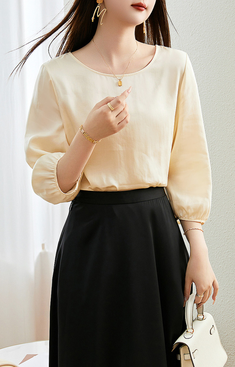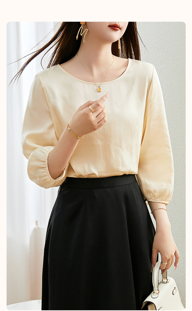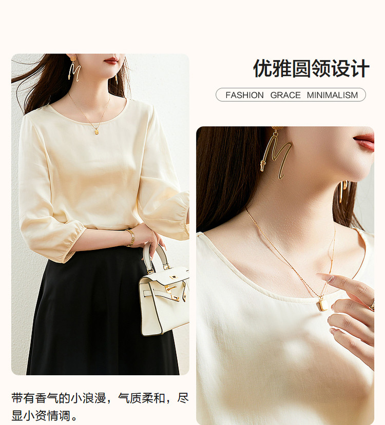 商品名称:春秋通勤收腰系带七分袖衬衣女装上衣 180033