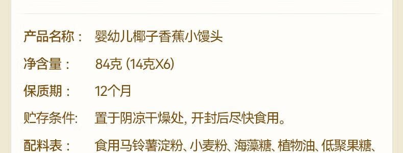 商品名称:秋田满满 婴幼儿奶香鸡蛋小馒头 84g