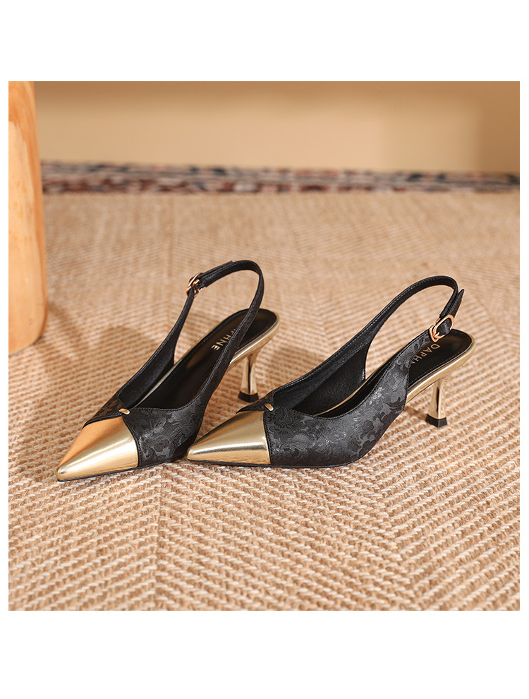 夏季后空凉鞋女一字带时装鞋气质高跟鞋轻奢百搭通勤鞋细跟女单鞋 069719