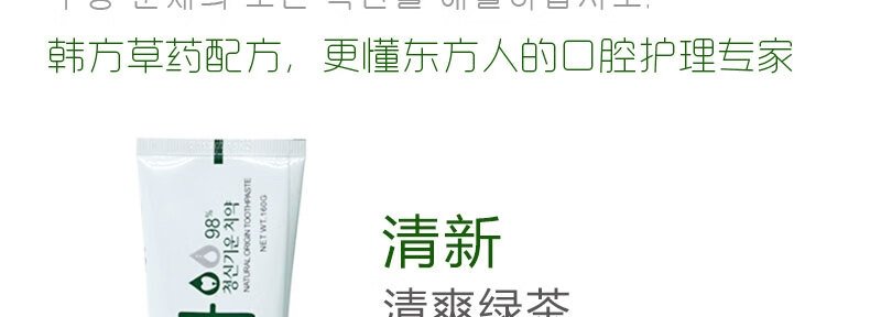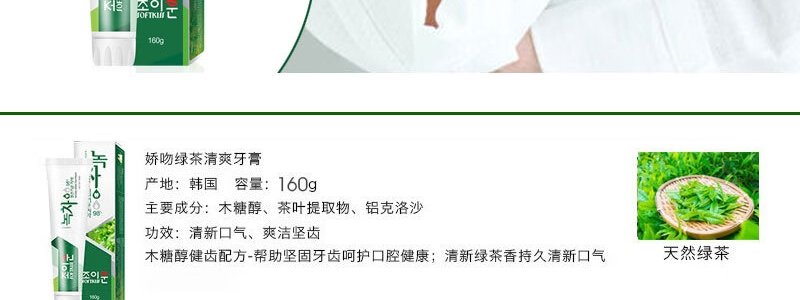 商品名称:韩国 娇吻 绿茶清爽清洁牙膏 160g