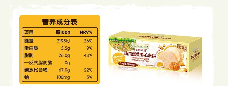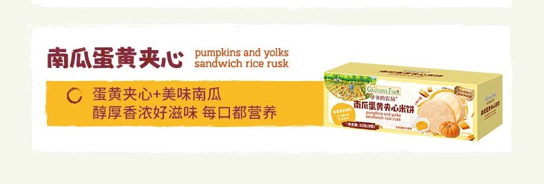 商品名称:爷爷的农场(Grandpa's Farm)南瓜蛋黄夹心米饼 32g