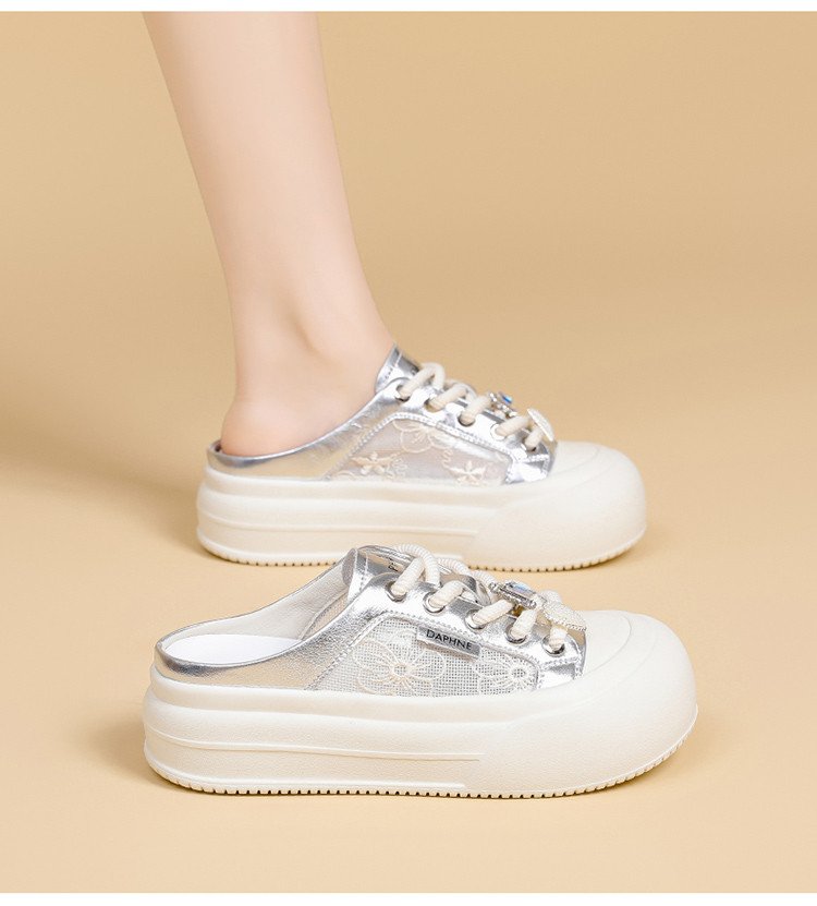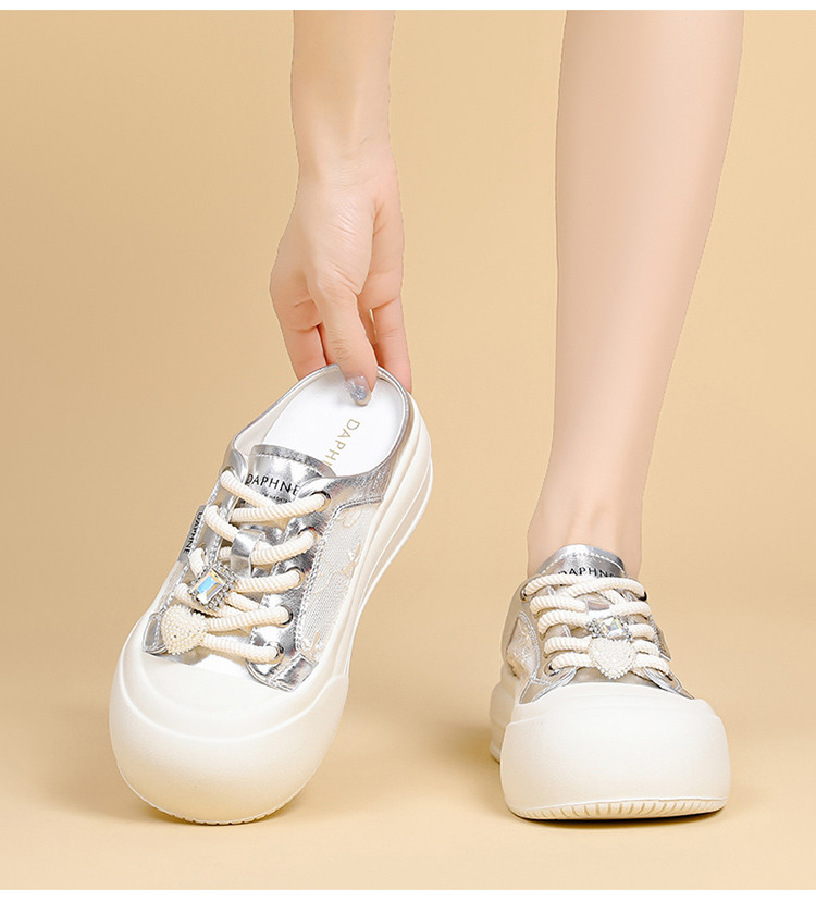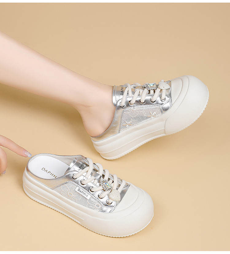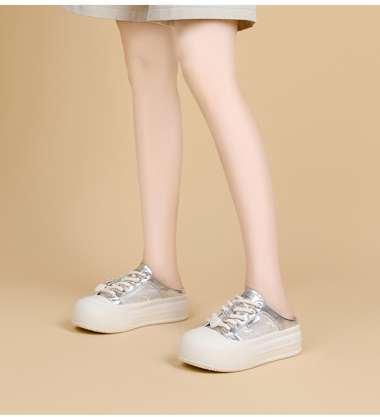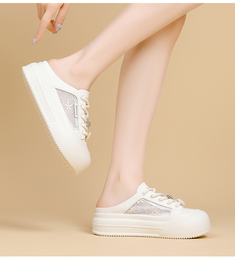 商品名称:春夏薄款透气网面鞋日常简约风小白鞋女一脚蹬懒人鞋半拖鞋休闲鞋 153175