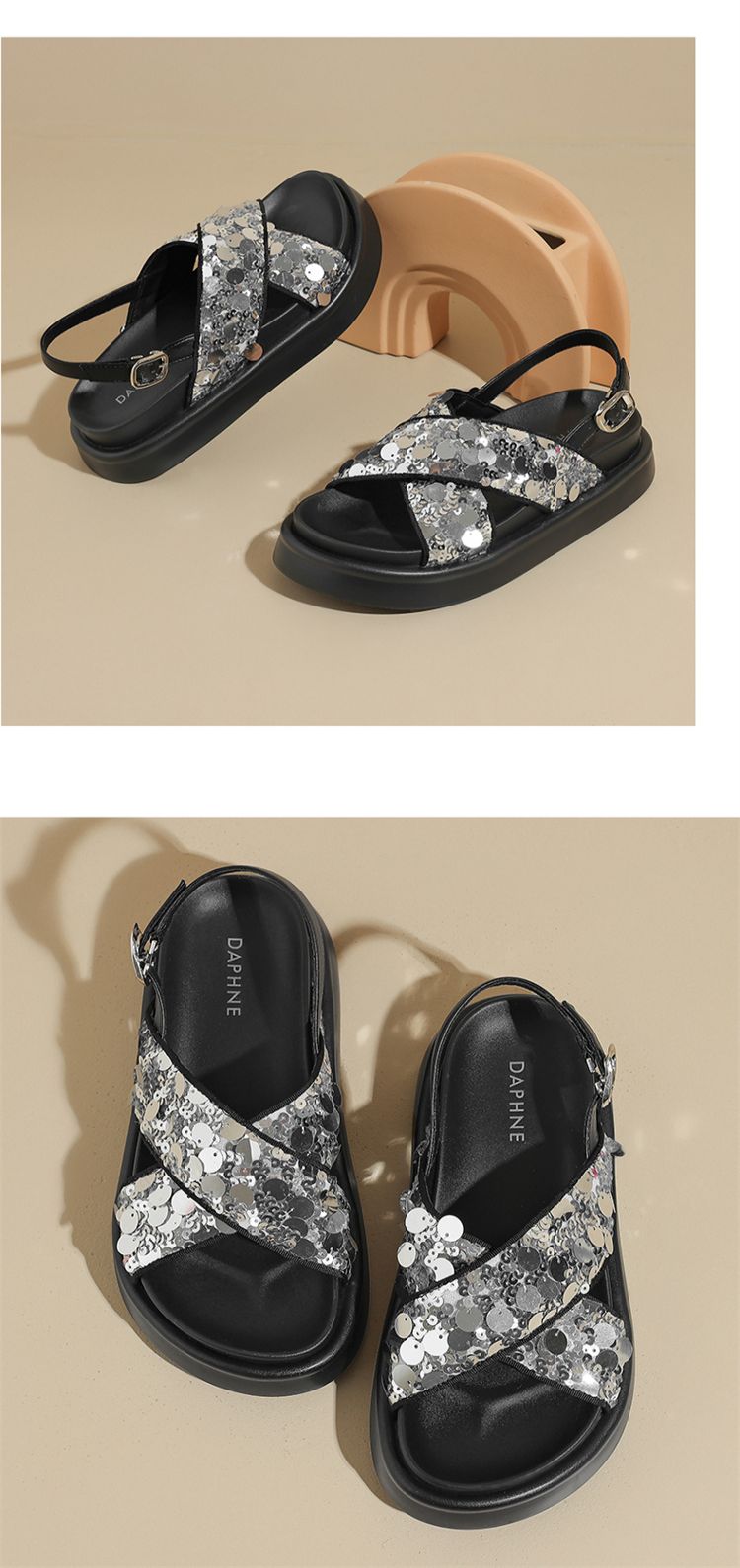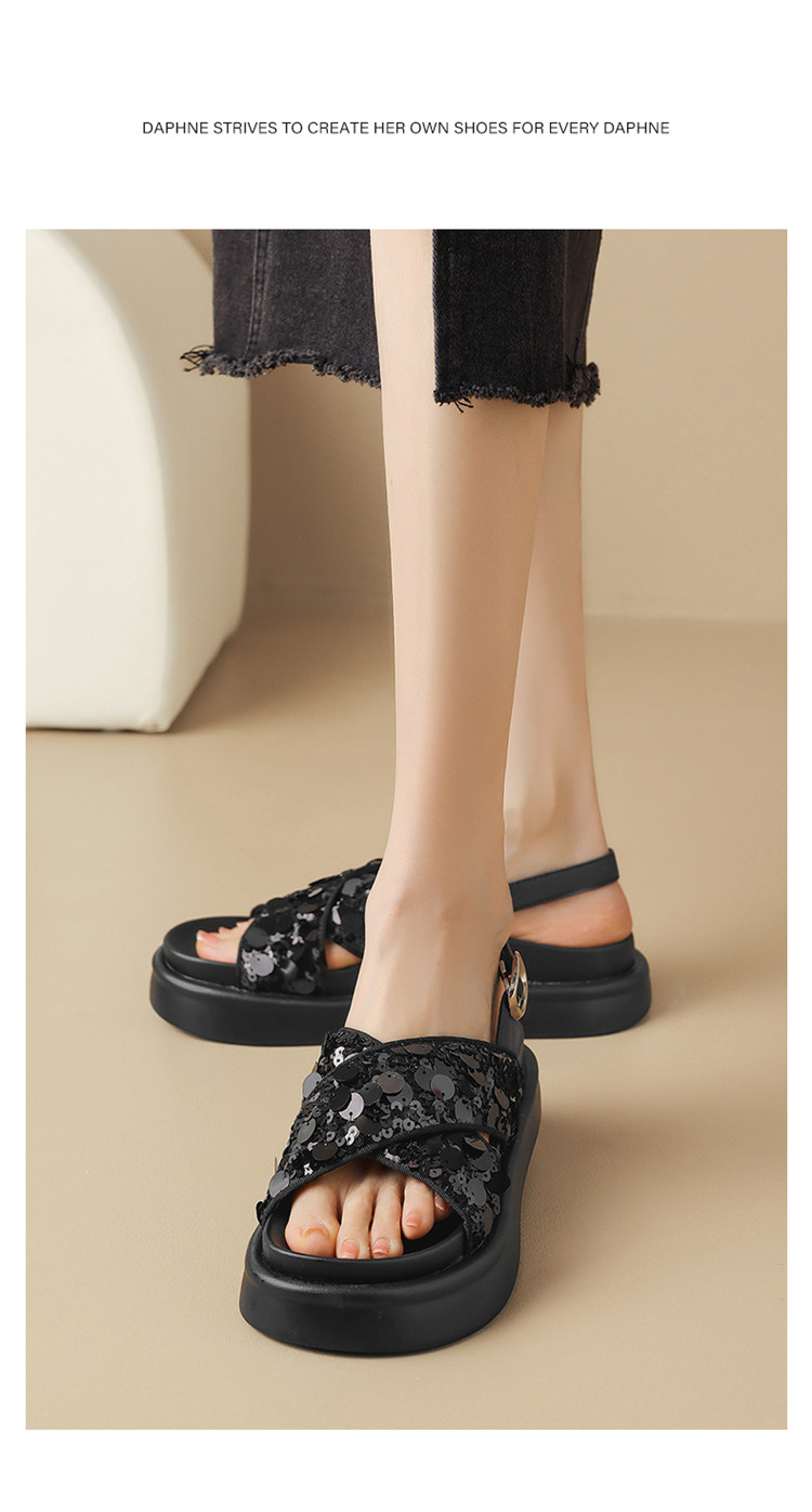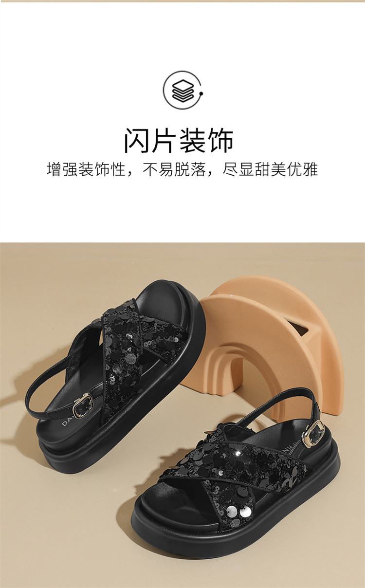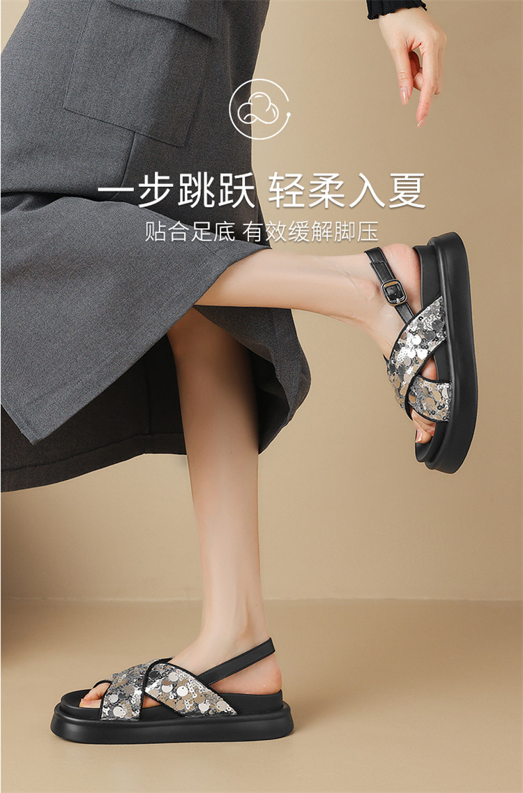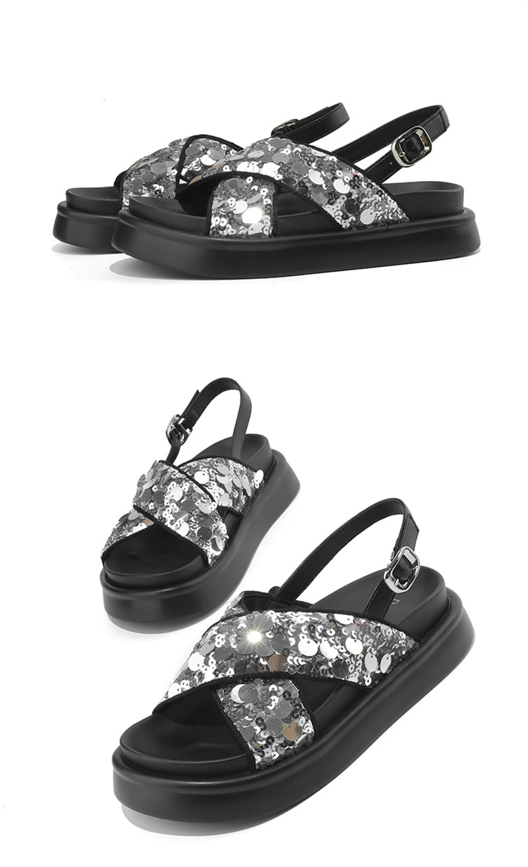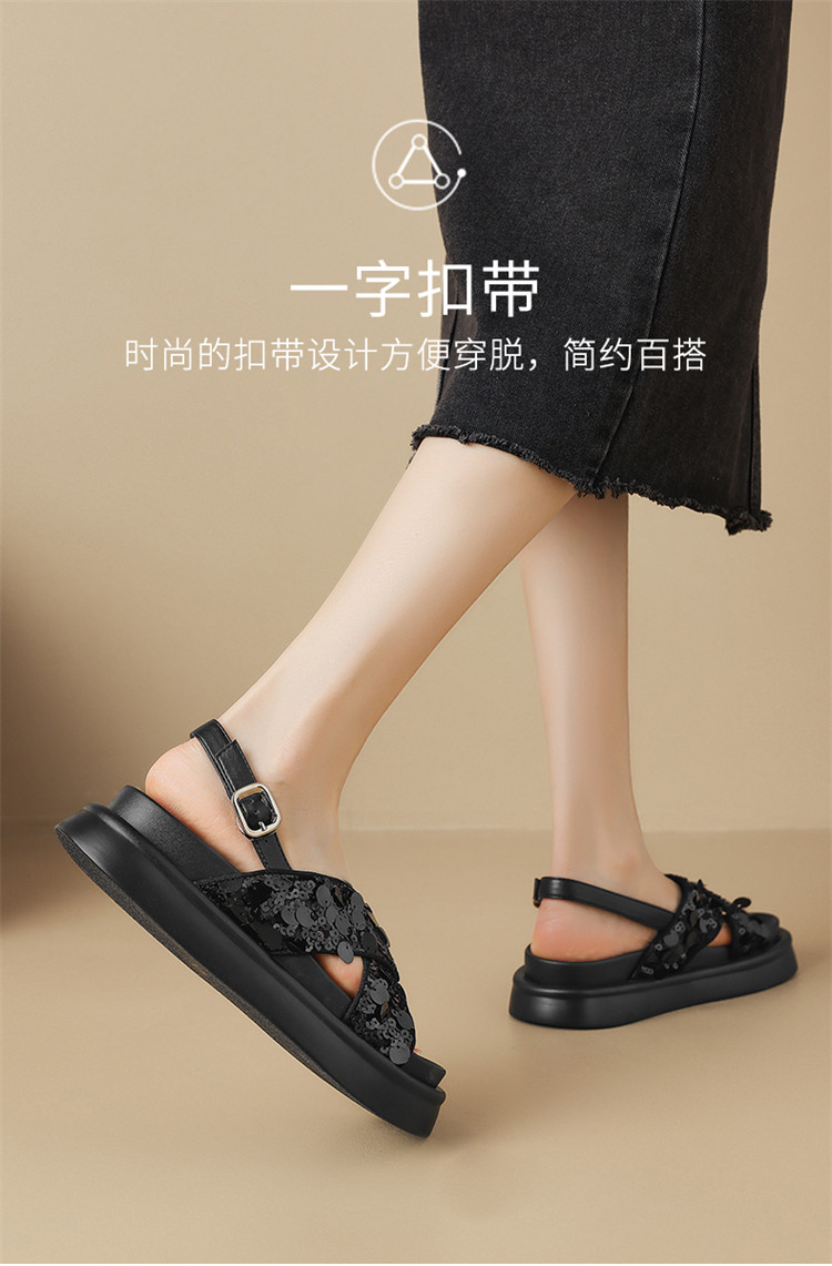 商品名称:【小众亮片】夏季韩系时装凉鞋休闲露趾平底凉鞋女软底舒适凉拖鞋 965399