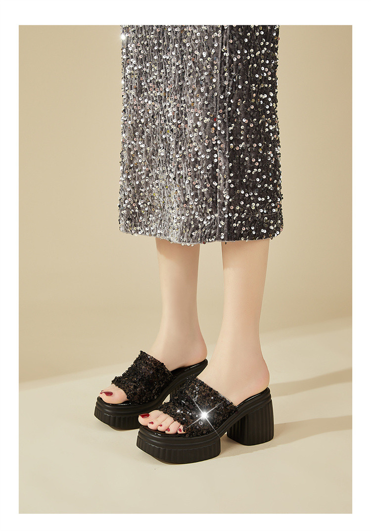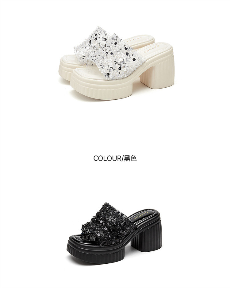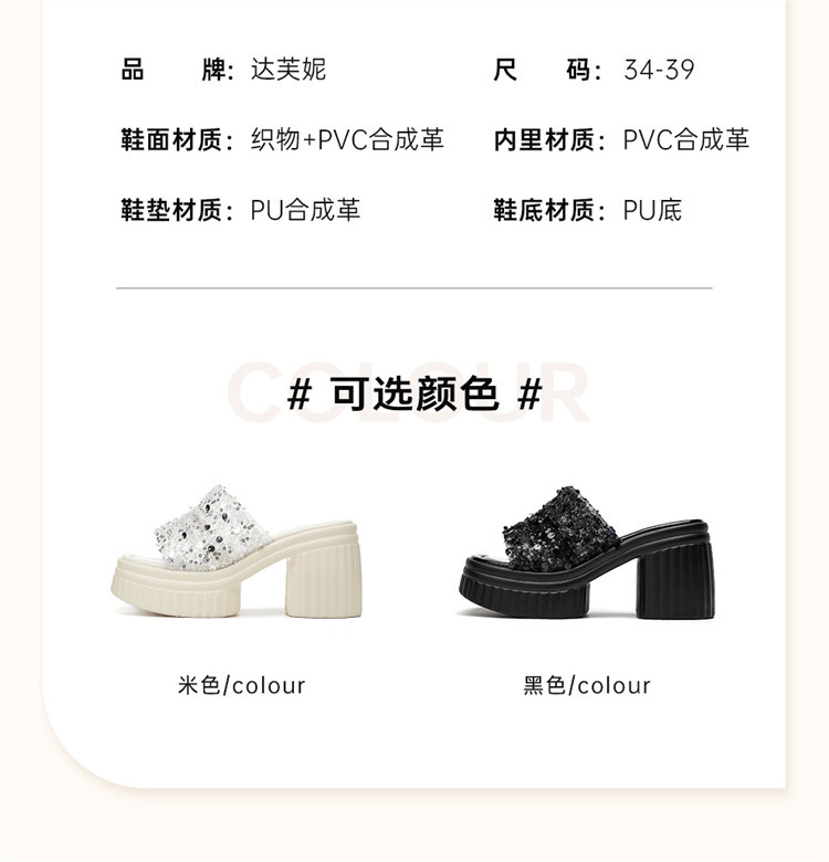 商品名称:【轻盈漫步】夏季粗跟增高凉拖鞋外穿舒适拖鞋女士松糕鞋女鞋 414746