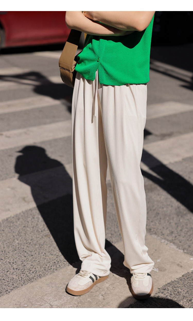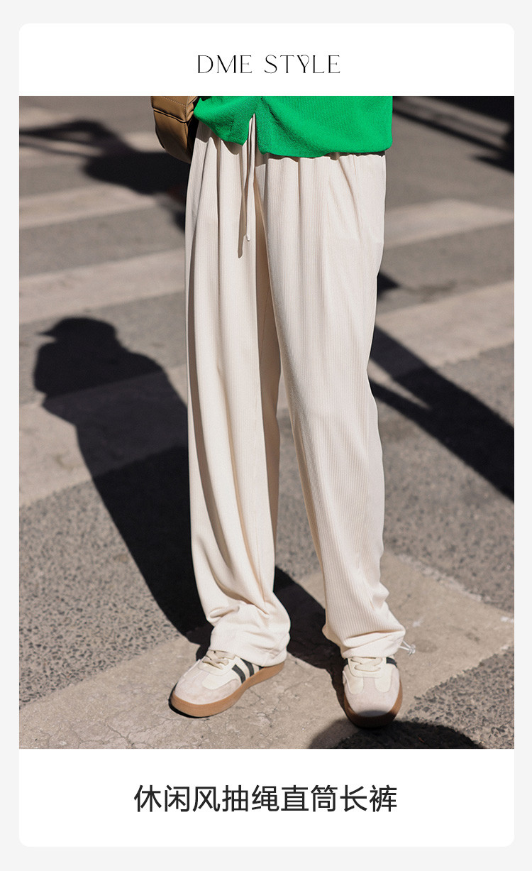 【脚口抽绳休闲裤】夏款休闲风松紧抽绳腰直筒长裤女 486914
