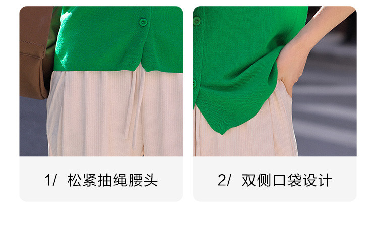 商品名称:【脚口抽绳休闲裤】夏款休闲风松紧抽绳腰直筒长裤女 486914