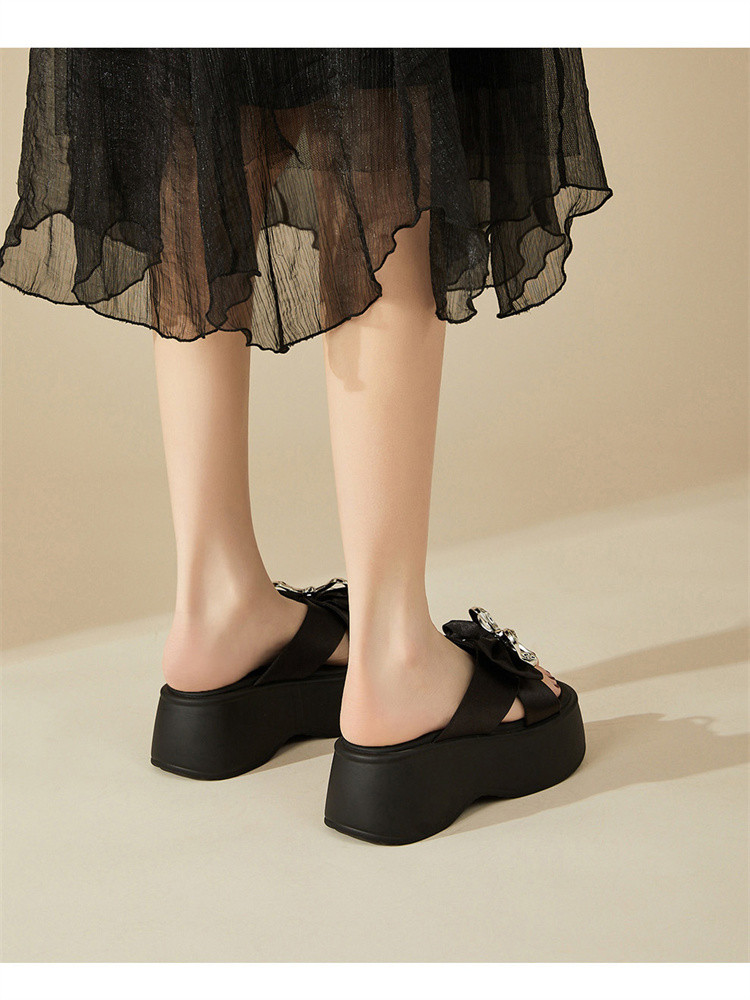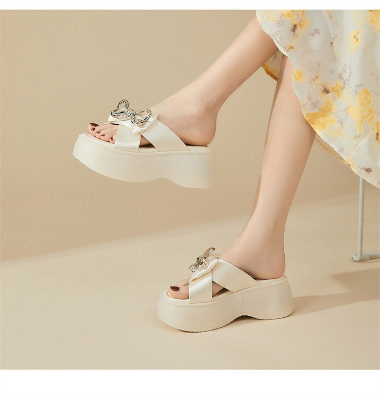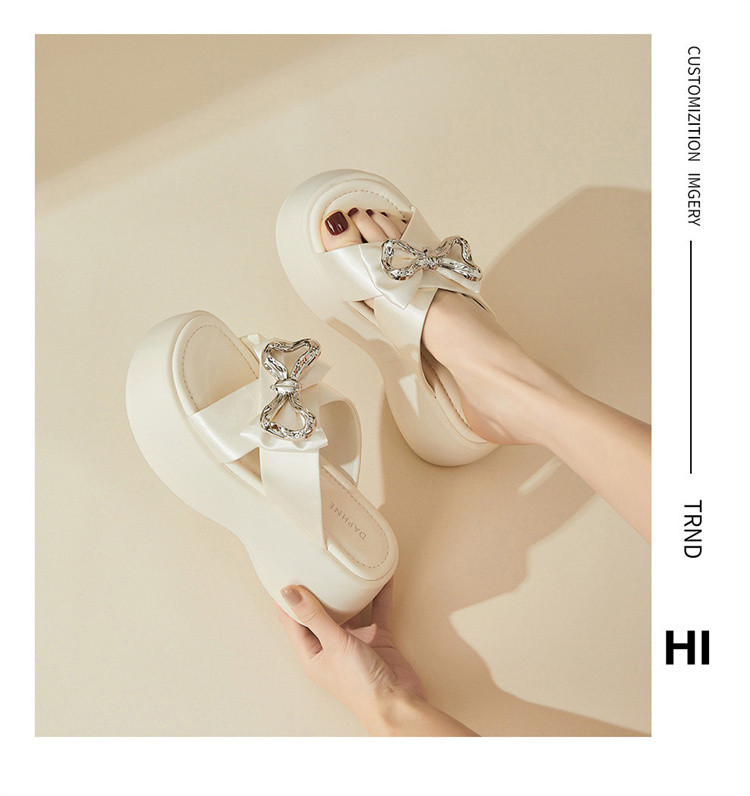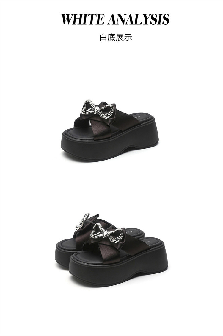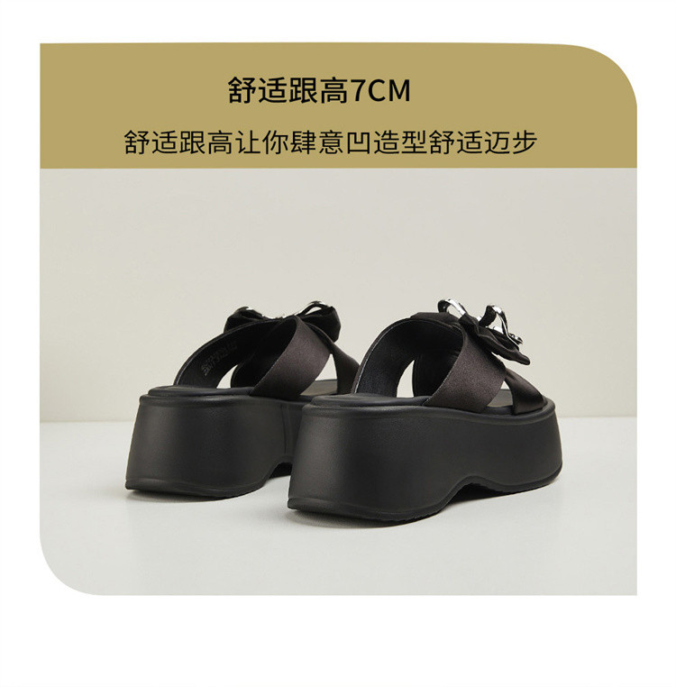 商品名称:【秒增7CM】夏季爆款厚底外穿拖鞋女款蝴蝶结半拖时装凉鞋 012759