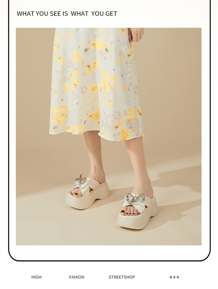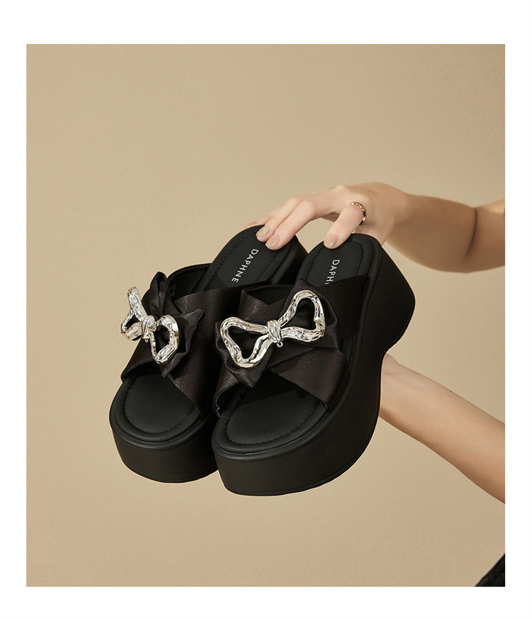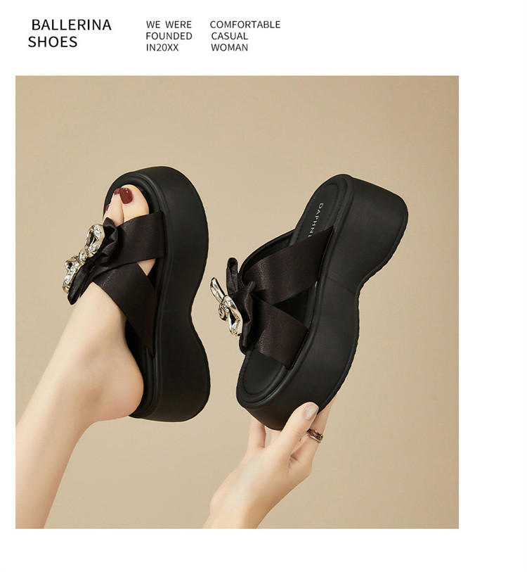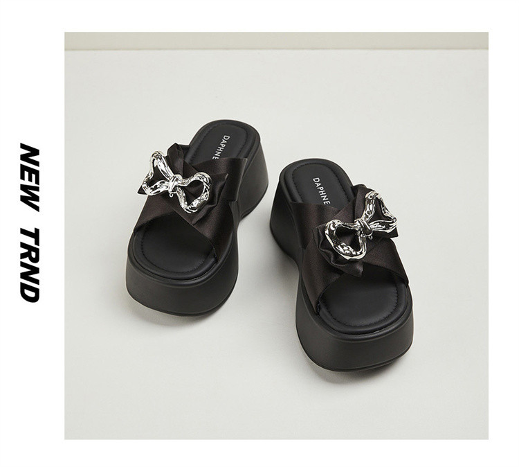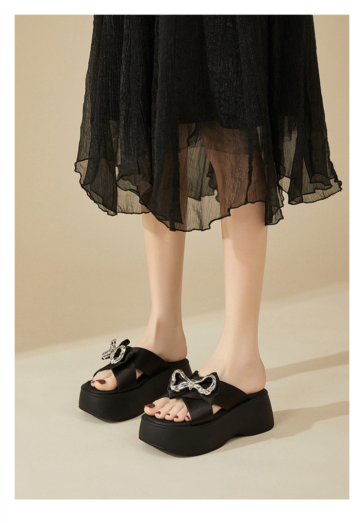 商品名称:【秒增7CM】夏季爆款厚底外穿拖鞋女款蝴蝶结半拖时装凉鞋 012759