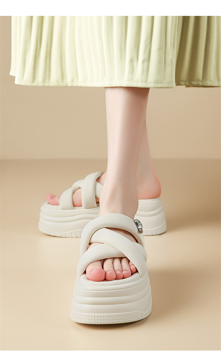 商品名称:夏季增高厚底拖鞋女外穿凉拖鞋交叉带拖鞋松糕底罗马凉鞋软底女鞋 784087