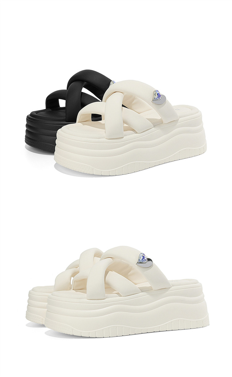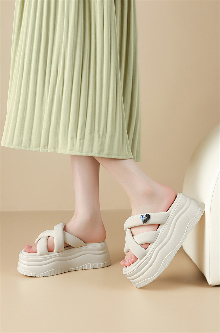 夏季增高厚底拖鞋女外穿凉拖鞋交叉带拖鞋松糕底罗马凉鞋软底女鞋 784087