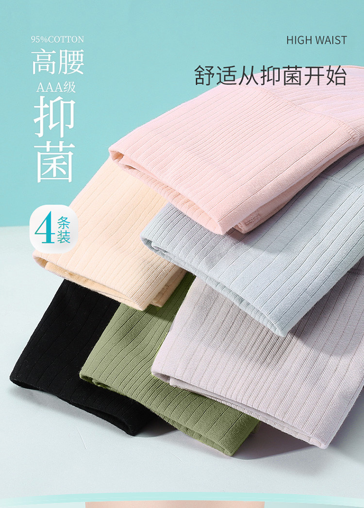 【舒适高腰 收腹提臀】4条装简约透气纯棉抑菌里裆内裤女士内裤 335966