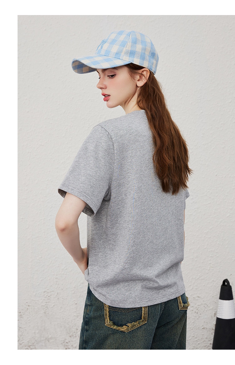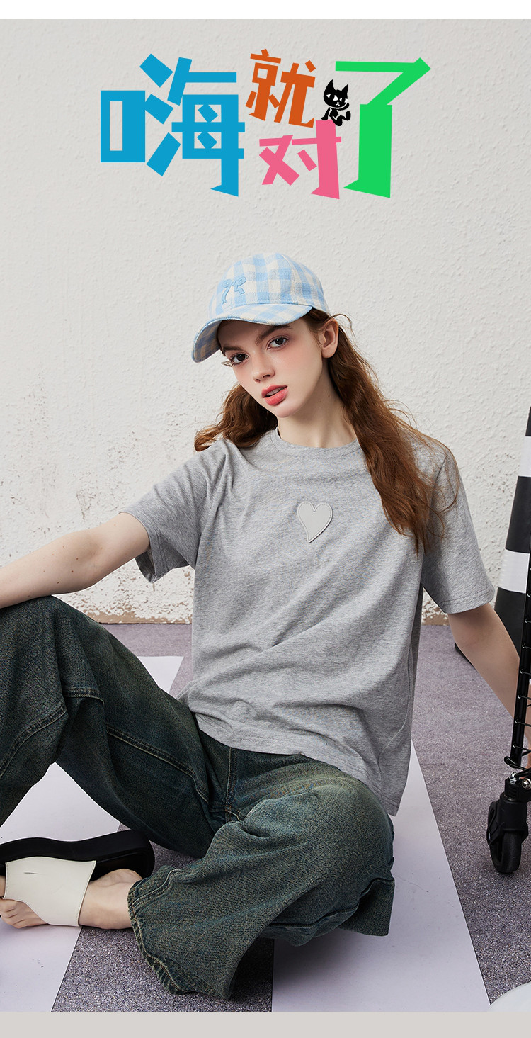 【棉质透气】夏季高街时髦百搭高级感宽松女式T恤简约短袖上衣 380957