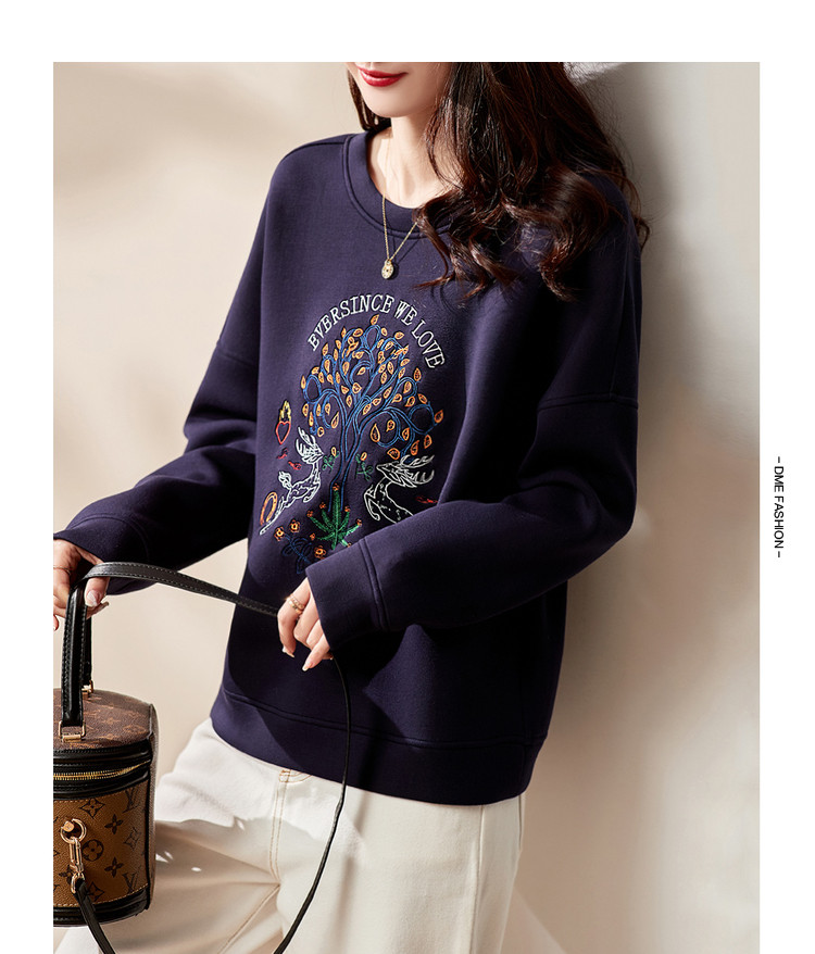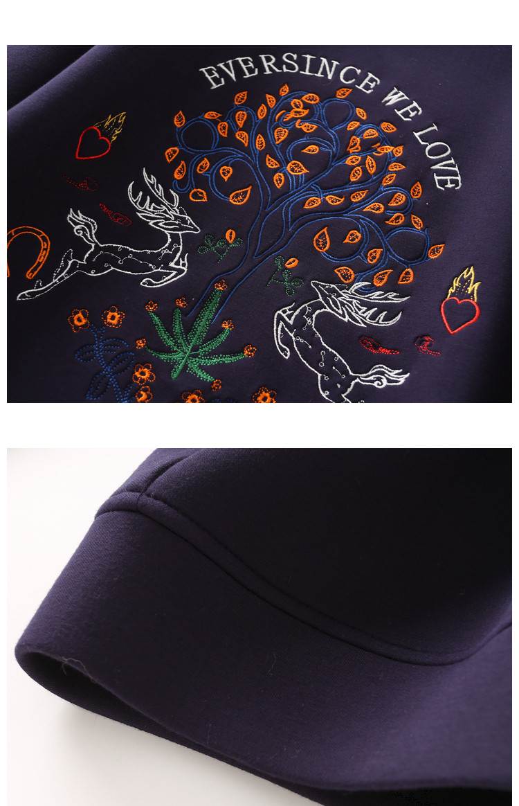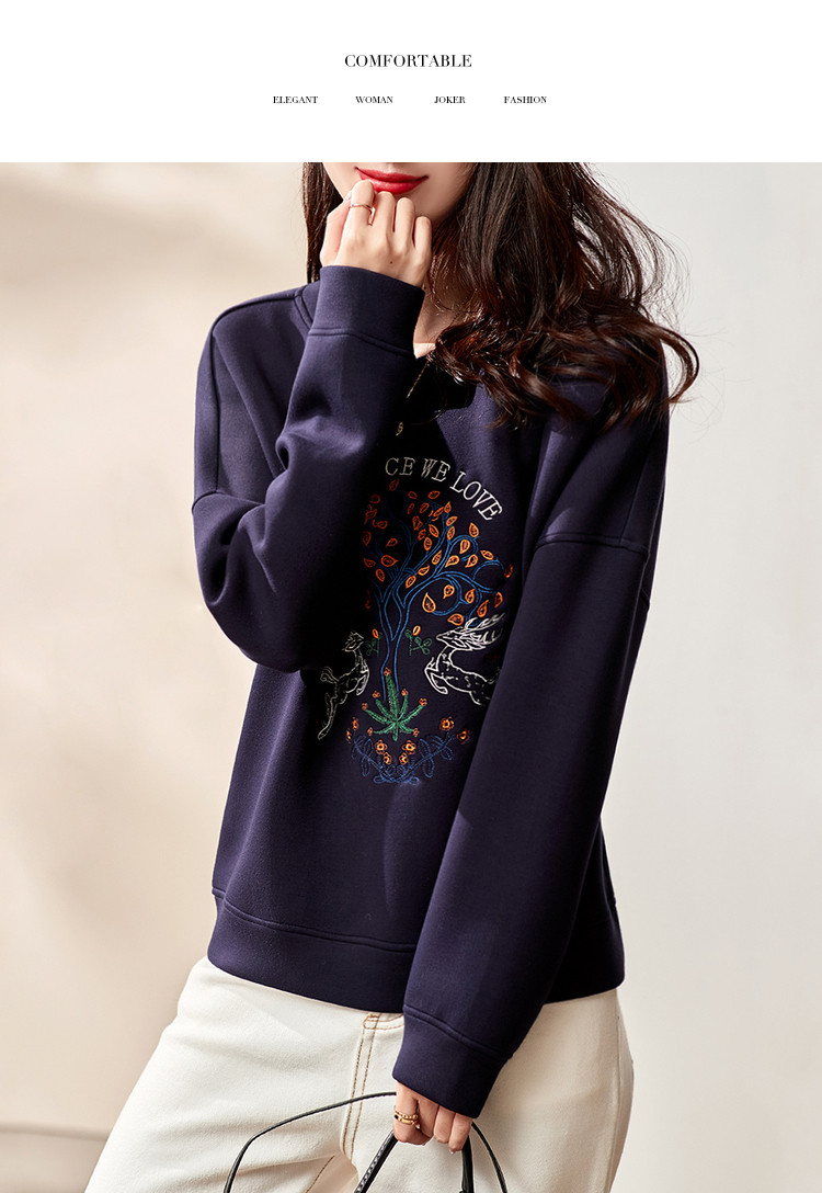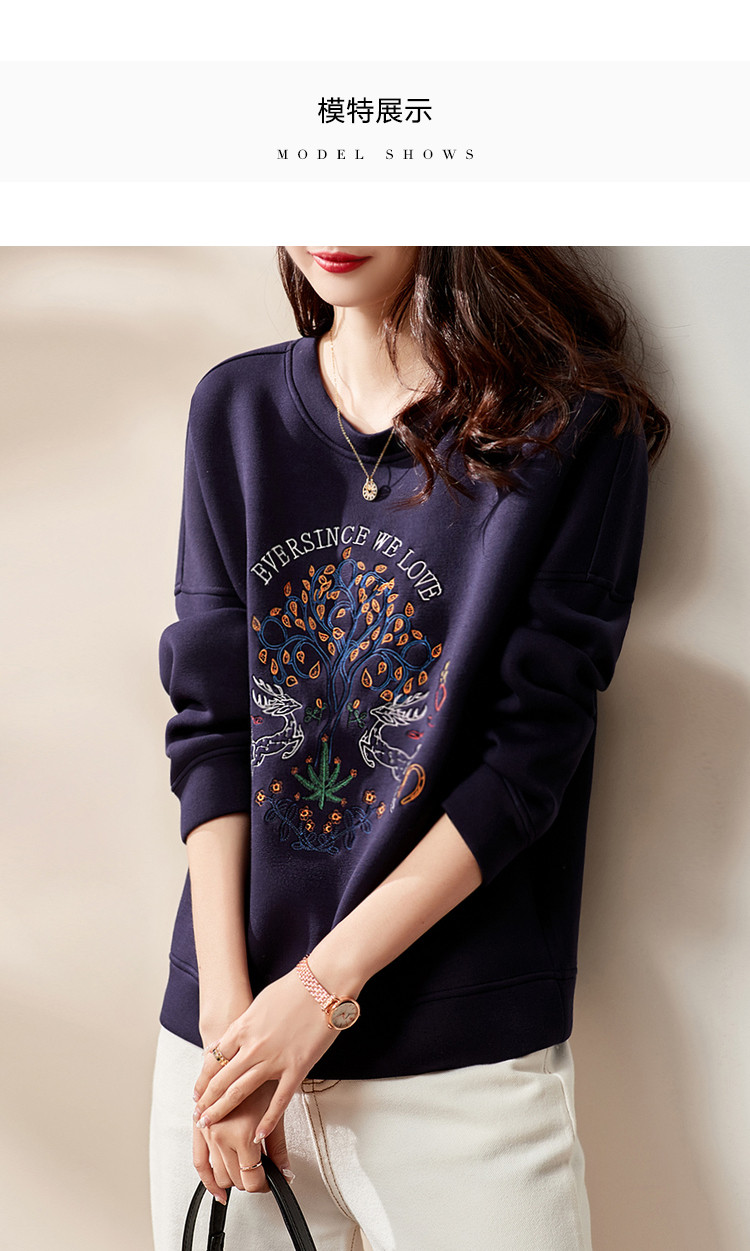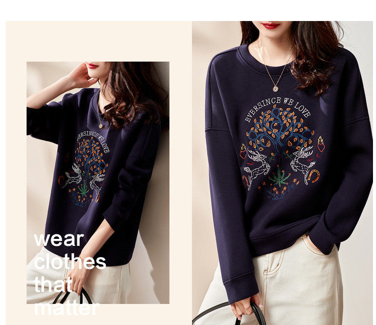 【麋鹿刺绣】春秋空气层圆领套头女卫衣女士卫衣长袖女上衣女 933825