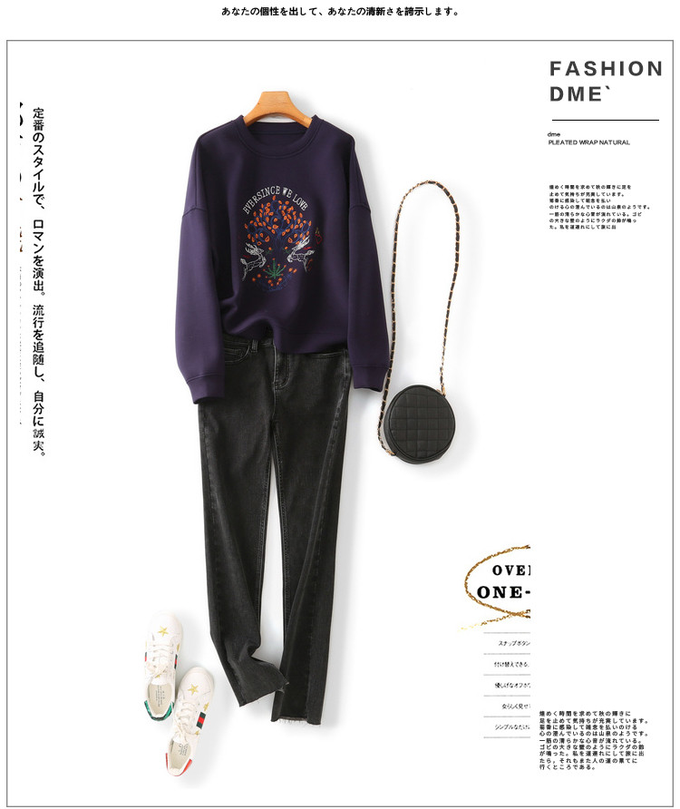 商品名称:【麋鹿刺绣】春秋空气层圆领套头女卫衣女士卫衣长袖女上衣女 933825
