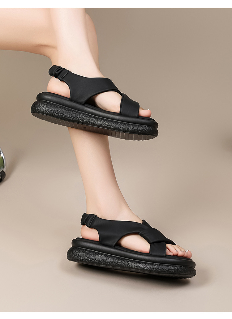 夏季透气简约风运动凉鞋女软底舒适沙滩凉鞋居家舒适厚底鞋时装鞋 485015