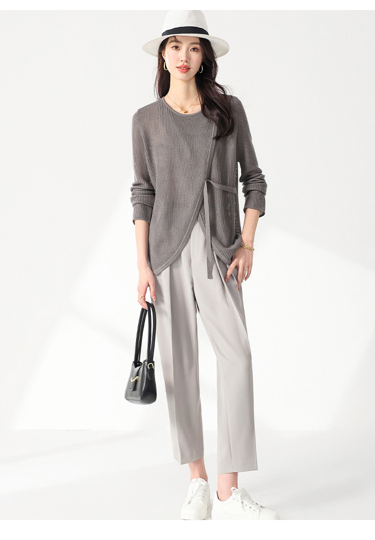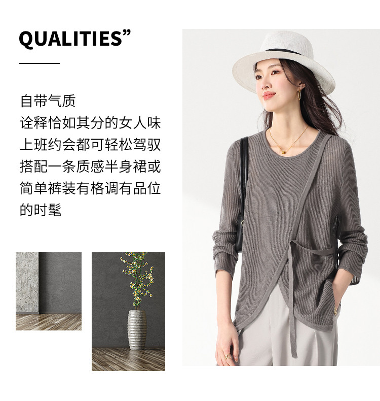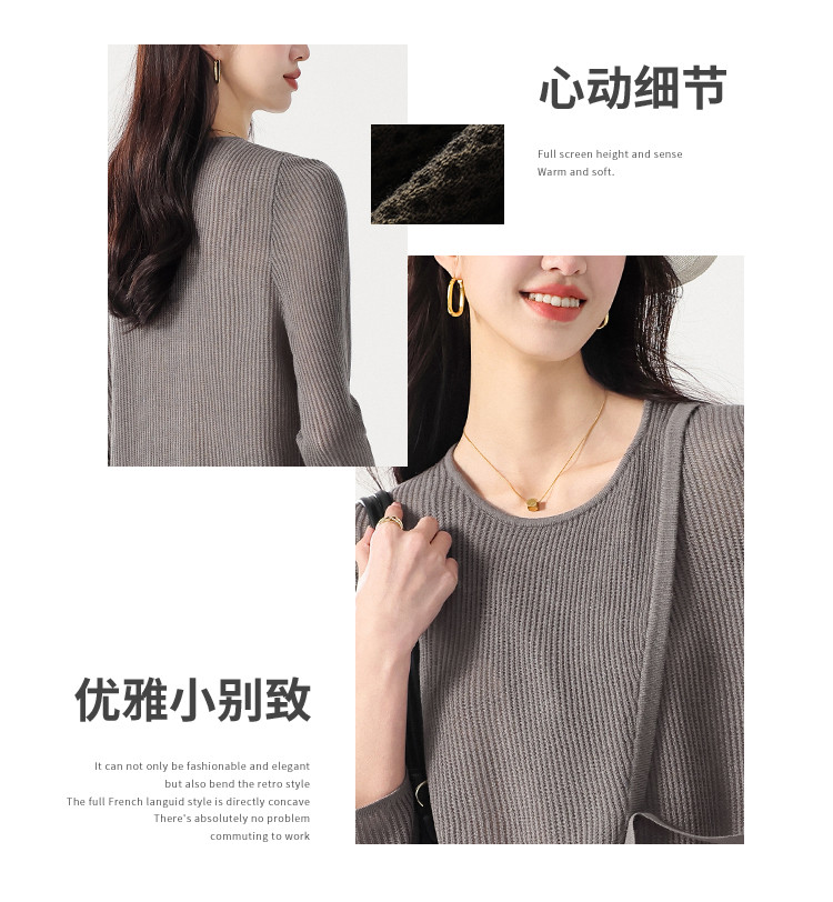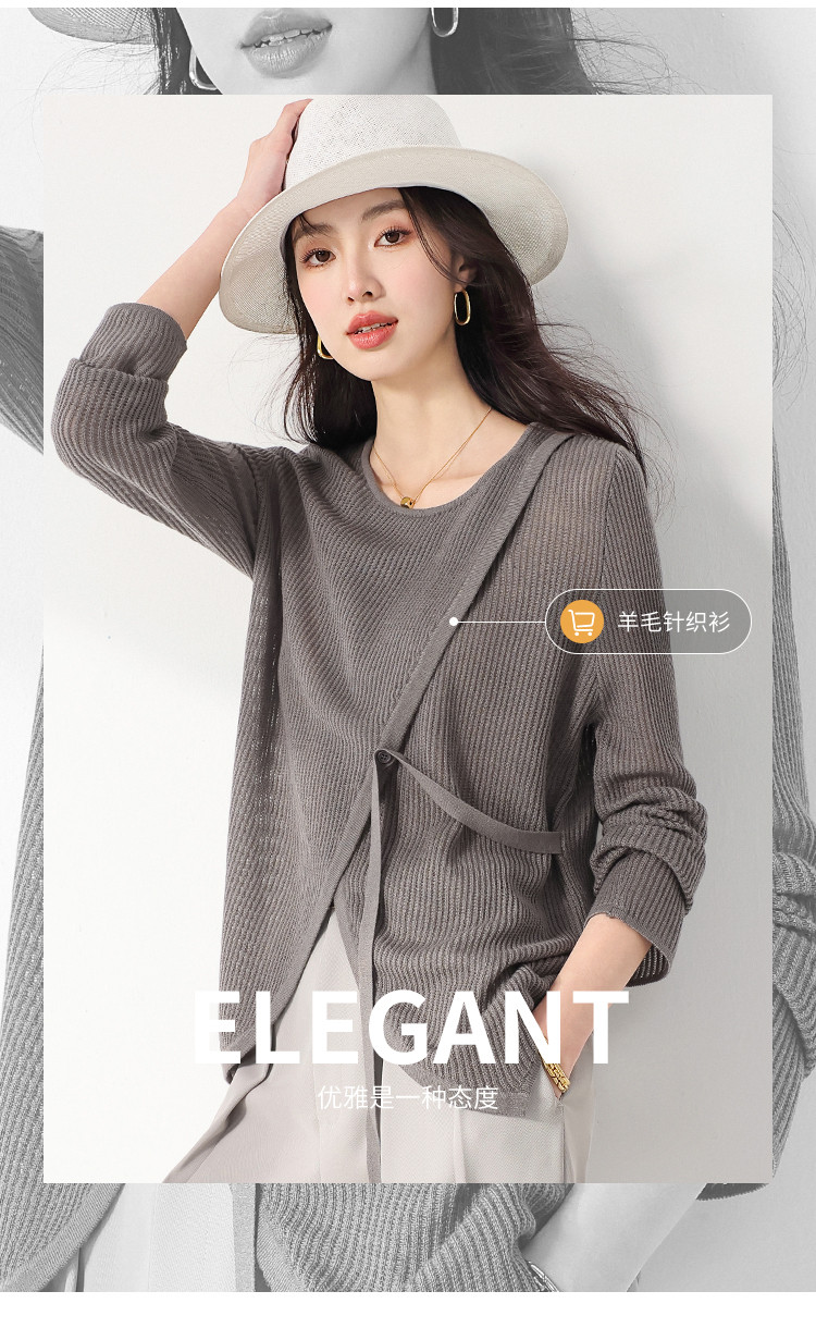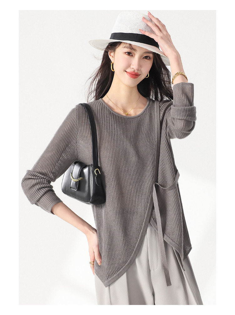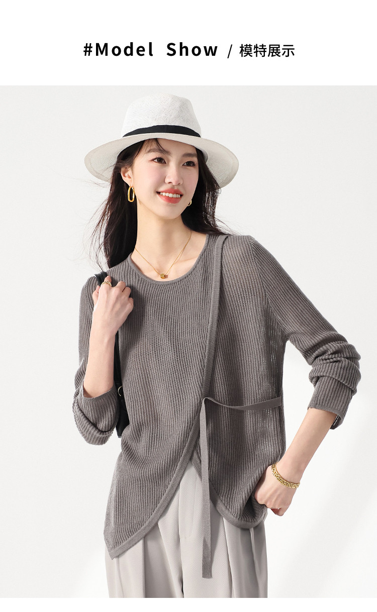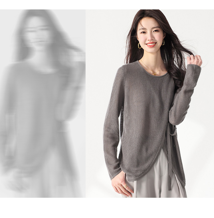 商品名称:简约纯色圆领腰带羊毛针织打底衫毛衣长袖T恤叠穿罩衫设计空调衫 632467