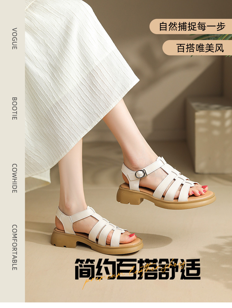 商品名称:夏季露趾透气皮凉鞋欧美风罗马鞋厚底舒适猪笼鞋女休闲鞋 135258