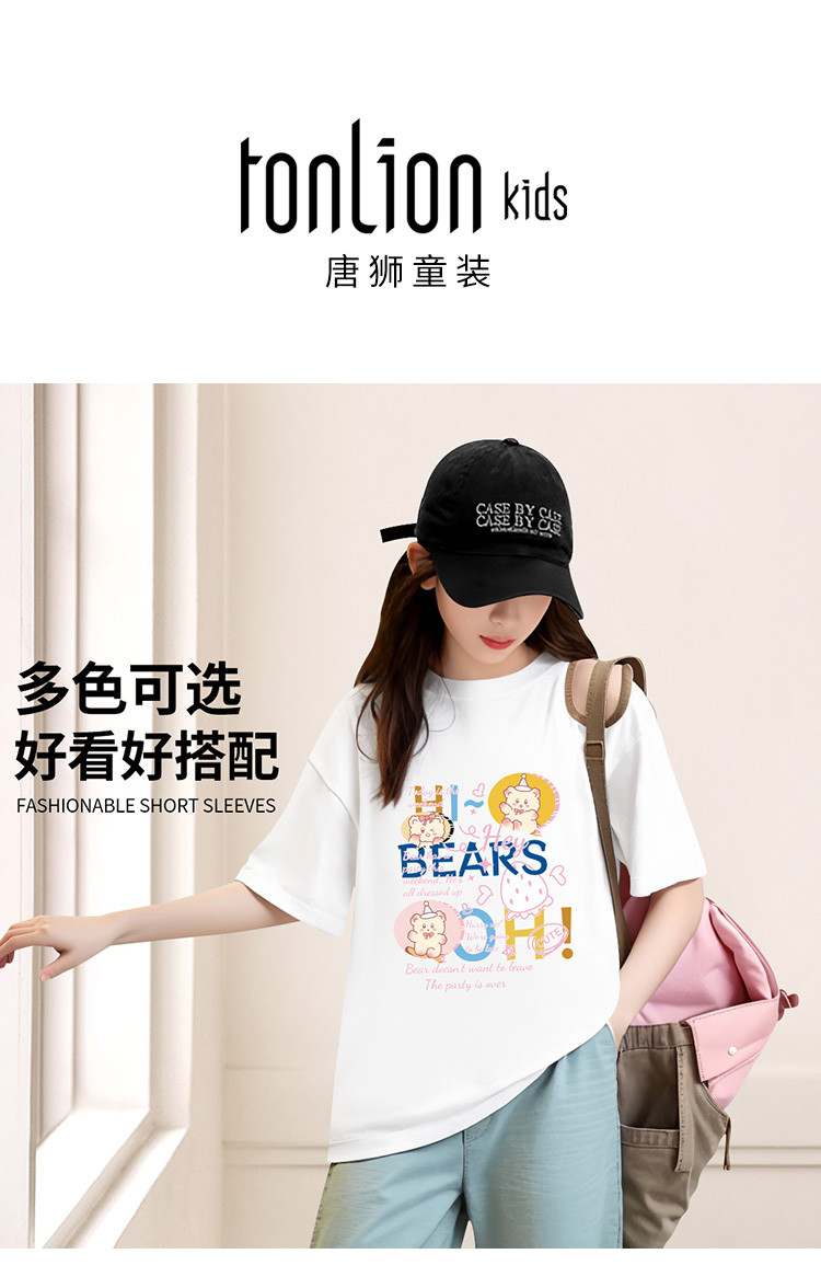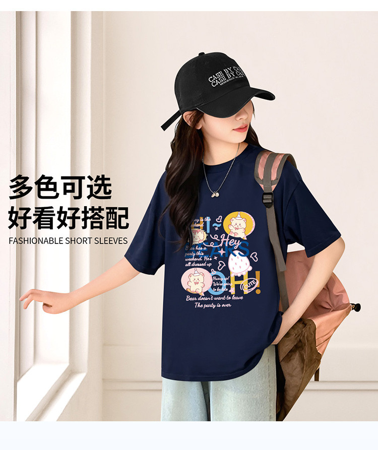 商品名称:女童休闲T恤夏季薄款纯棉短袖洋气卡通宽松上衣中大童装 070799