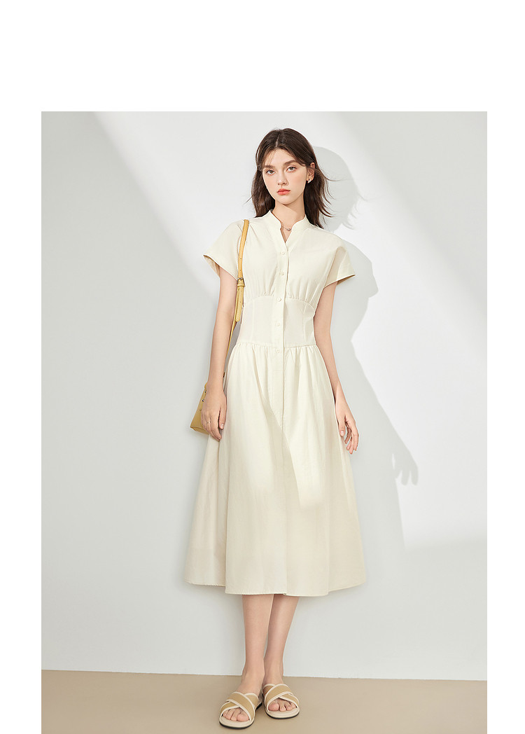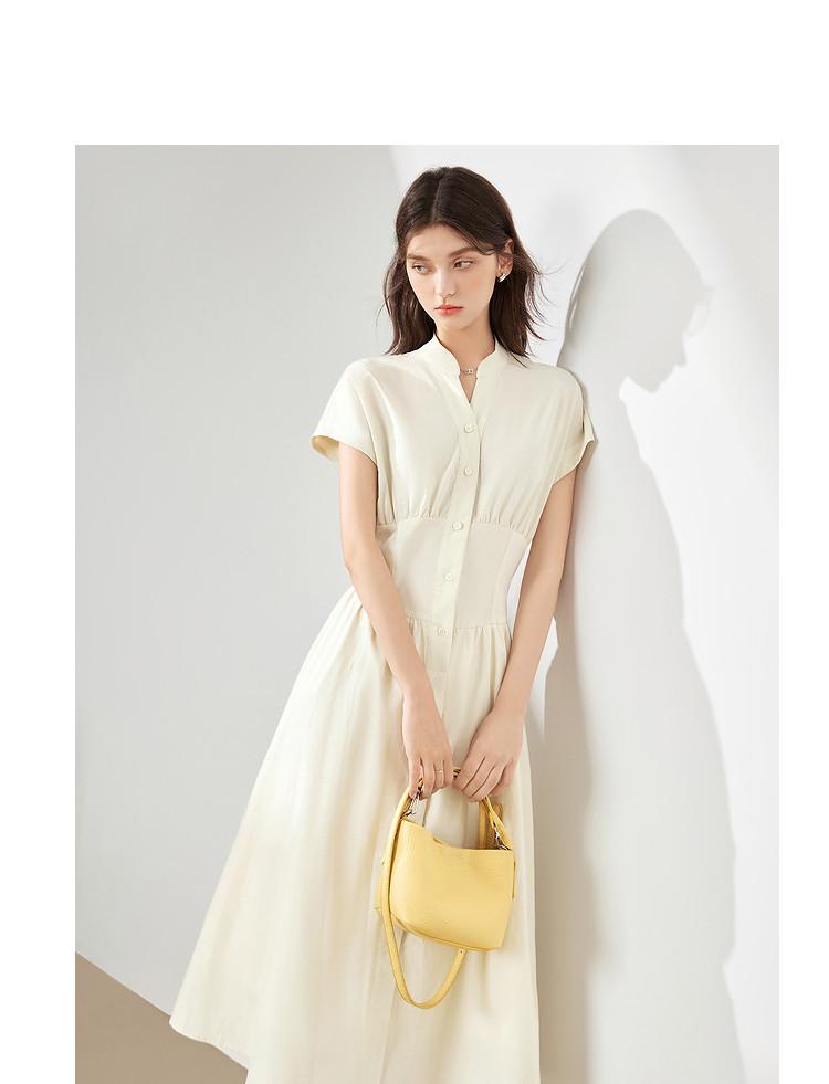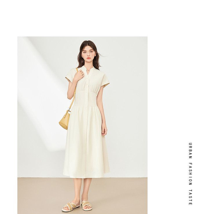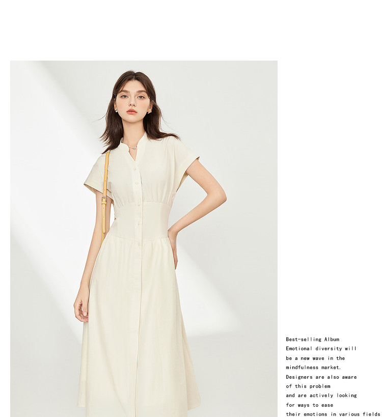 商品名称:【2024夏季】法式极简风V领连衣裙女时髦收腰a字长裙 704340