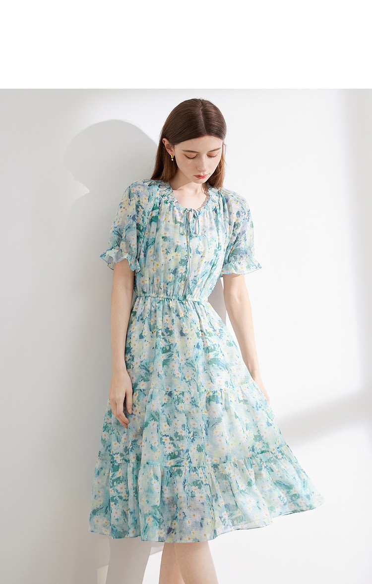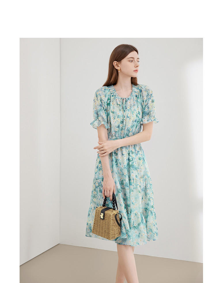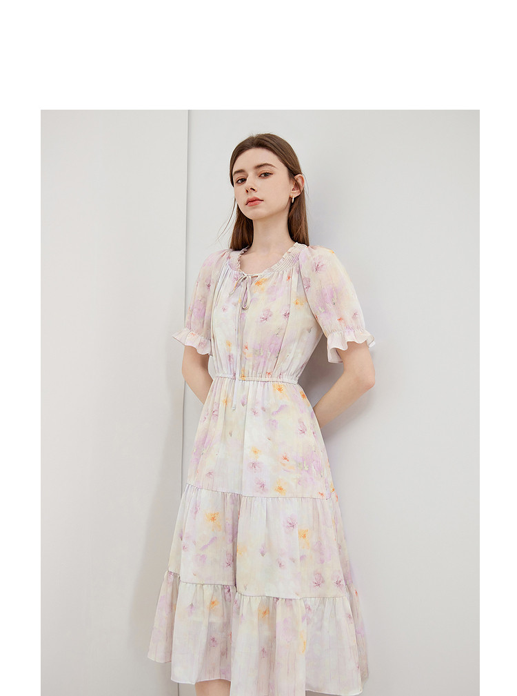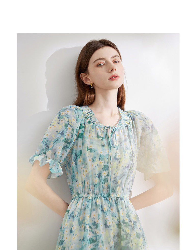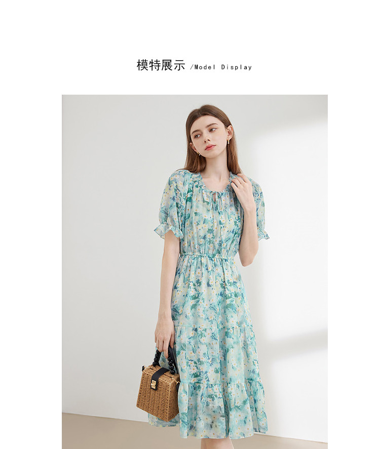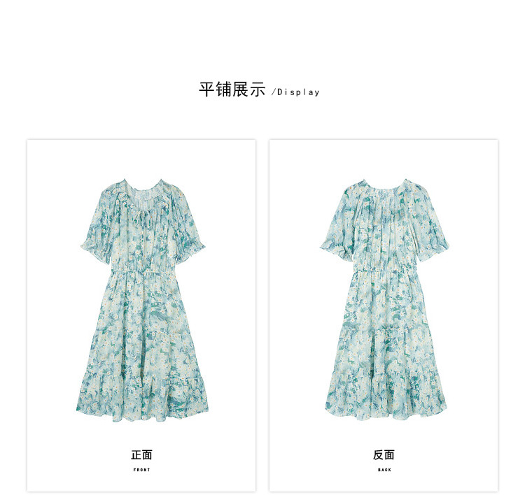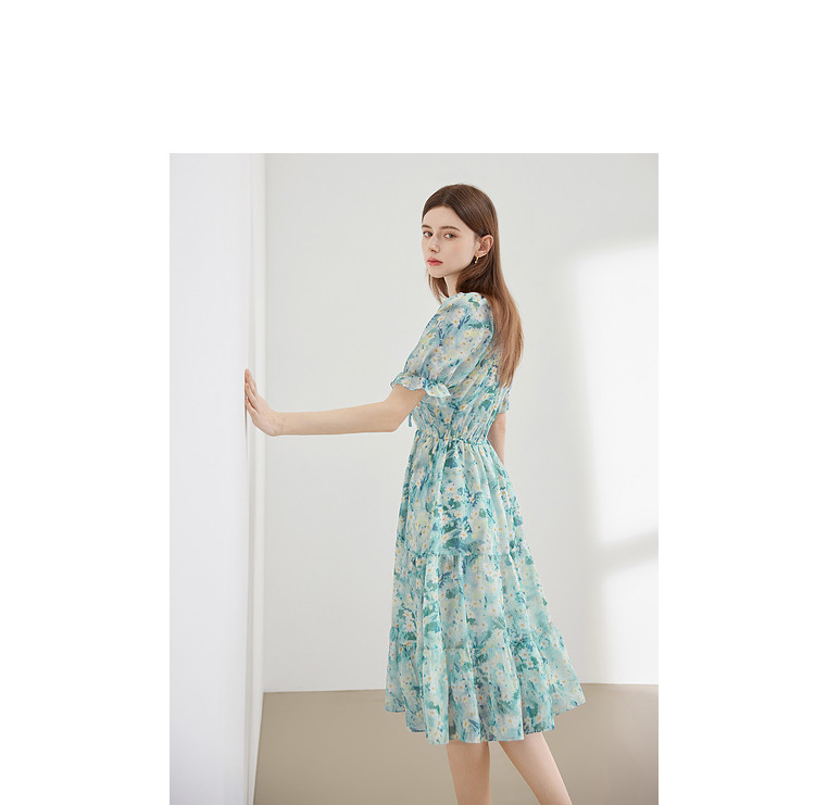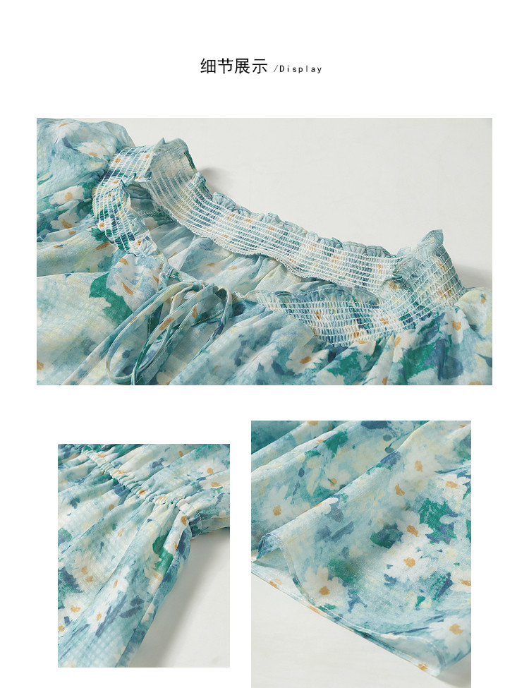 商品名称:夏季热卖法式泡泡袖连衣裙女夏收腰压褶温柔a字碎花裙子 283796