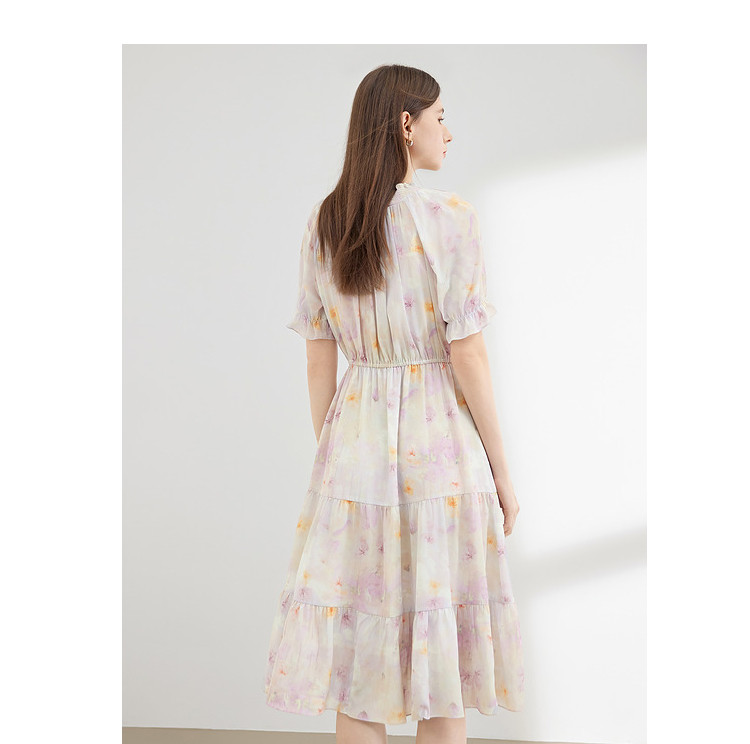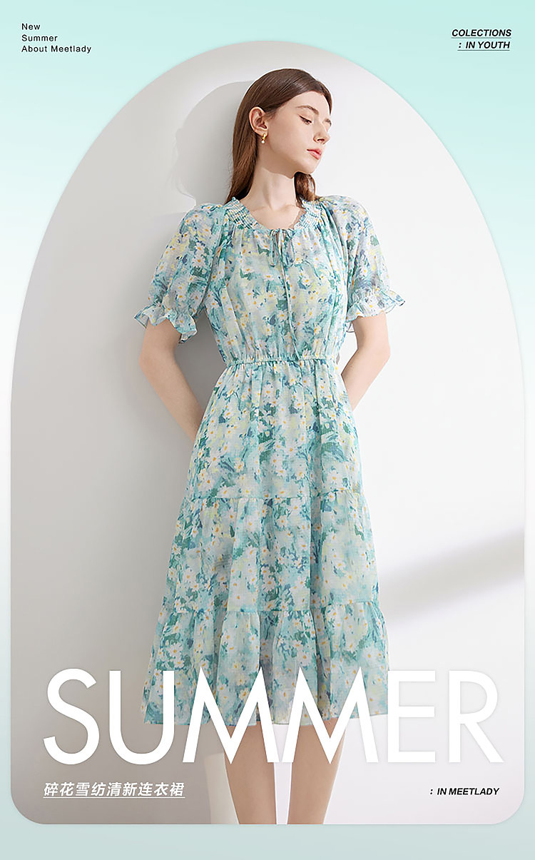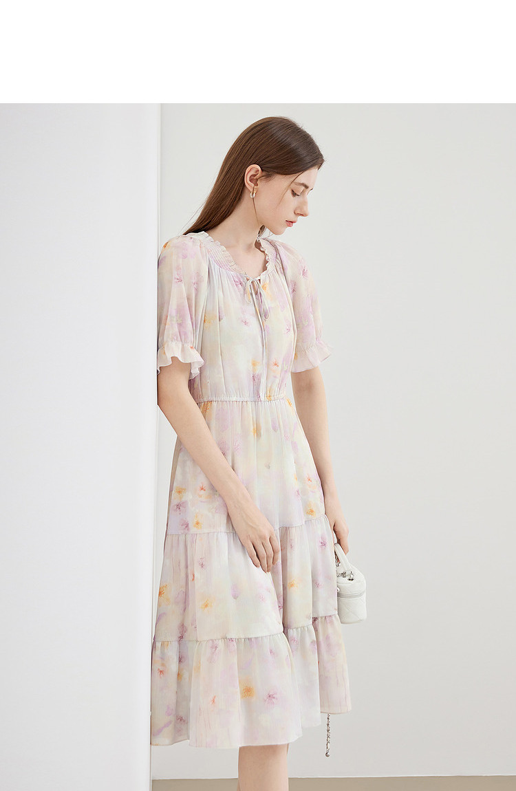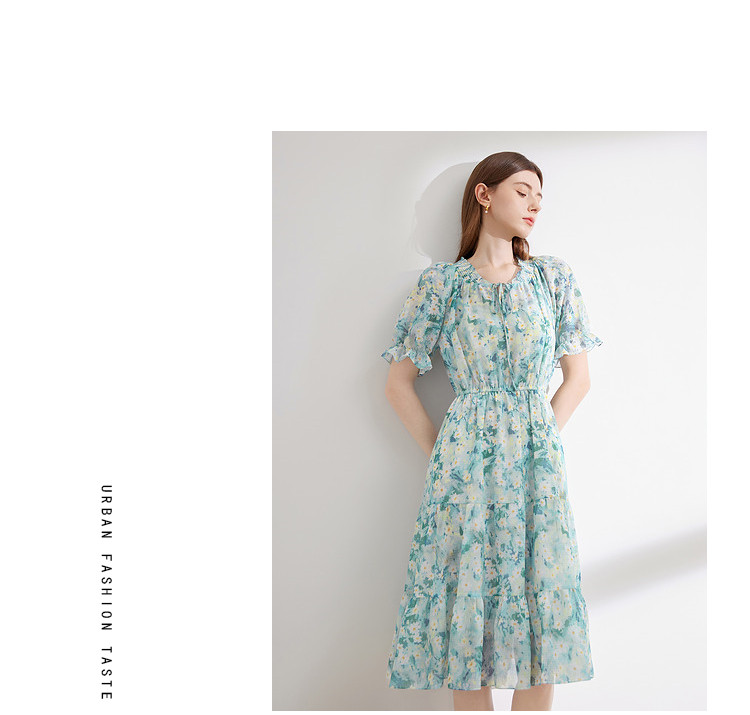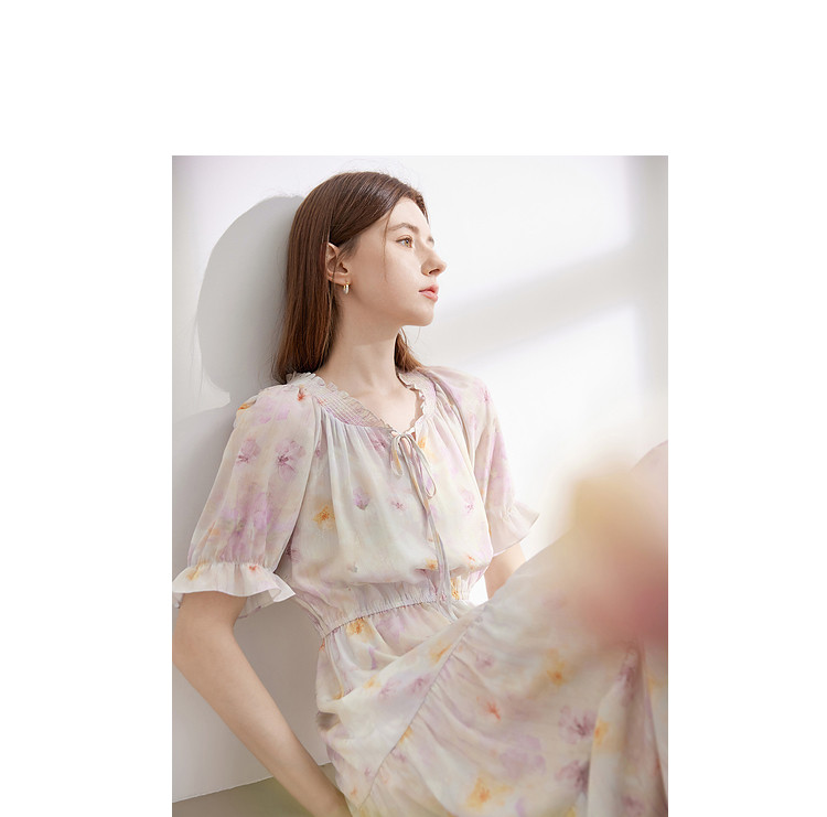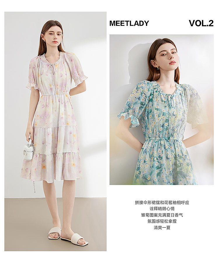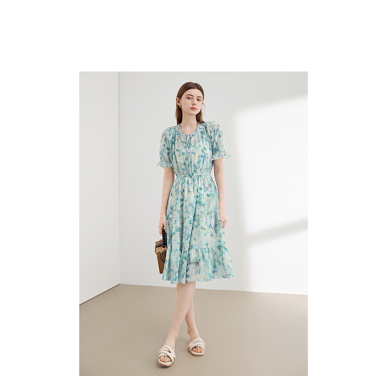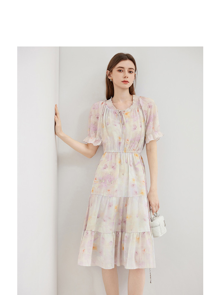 商品名称:夏季热卖法式泡泡袖连衣裙女夏收腰压褶温柔a字碎花裙子 283796