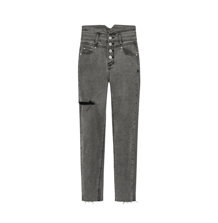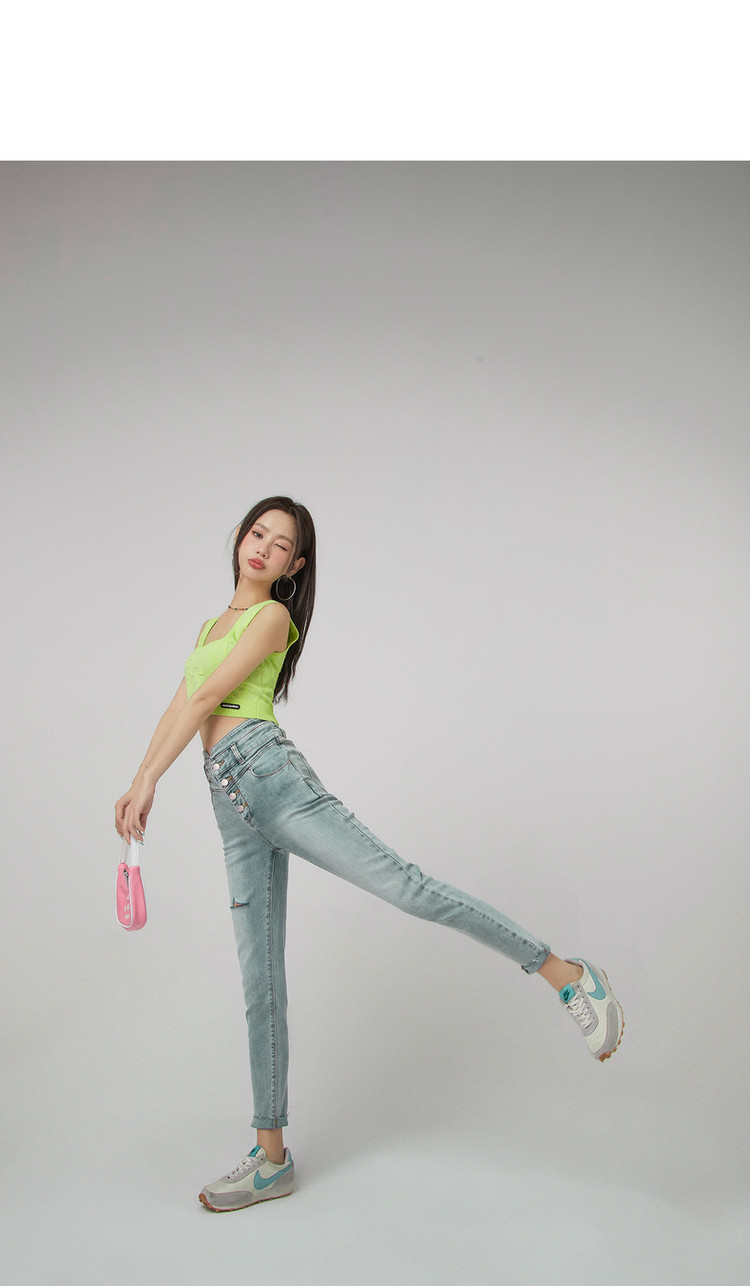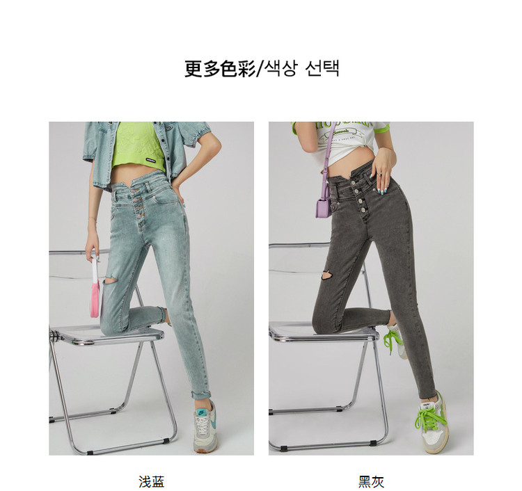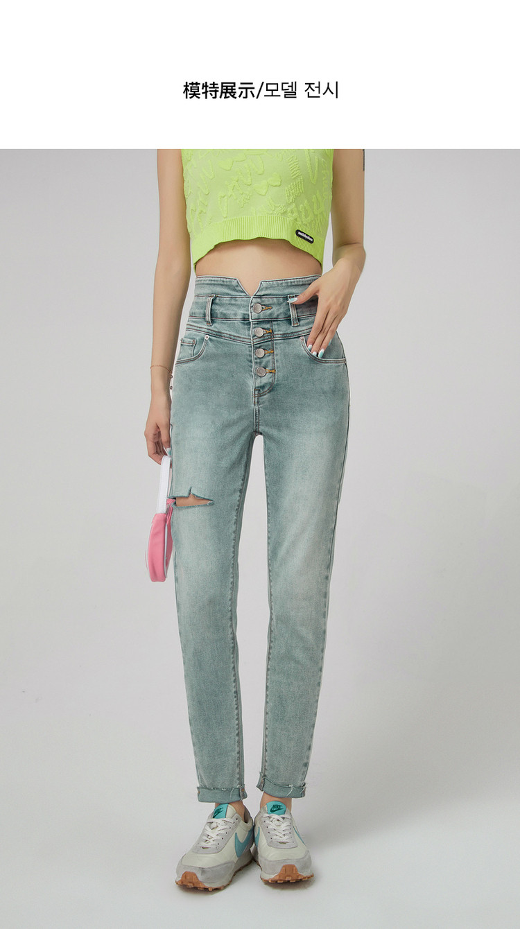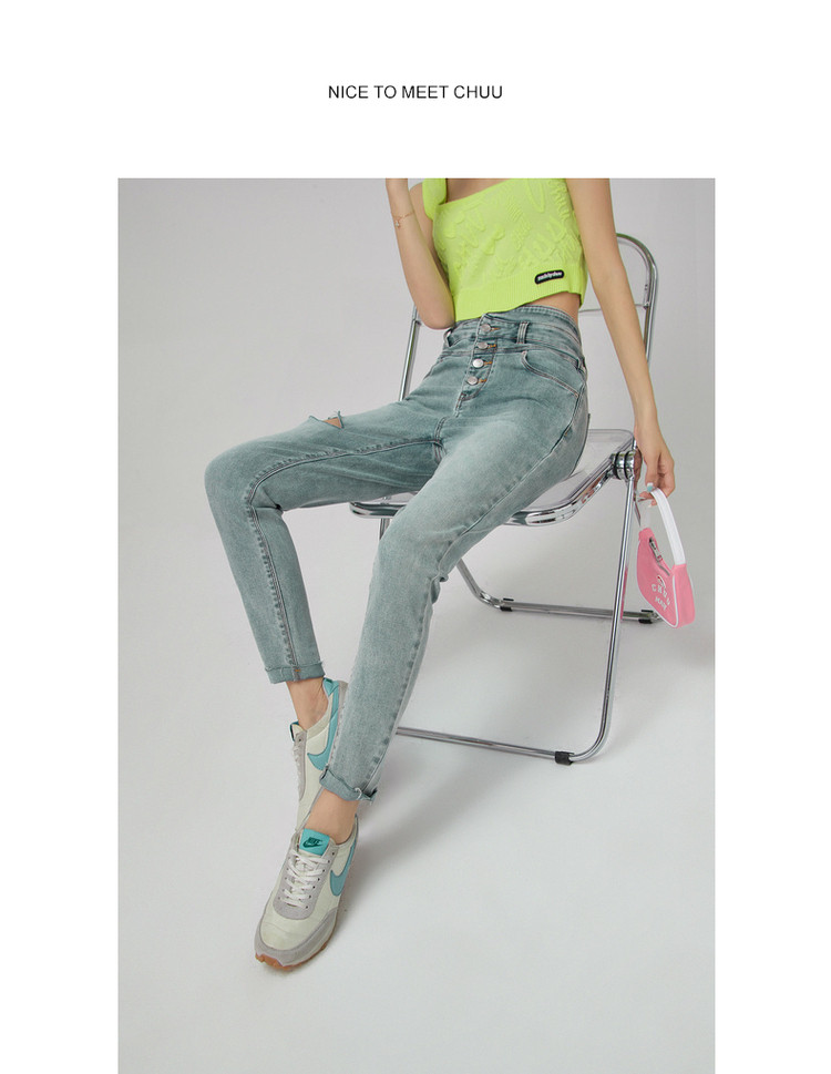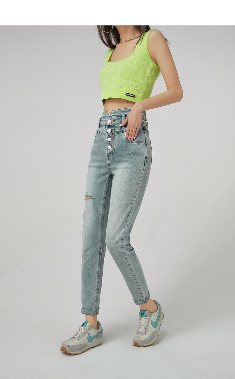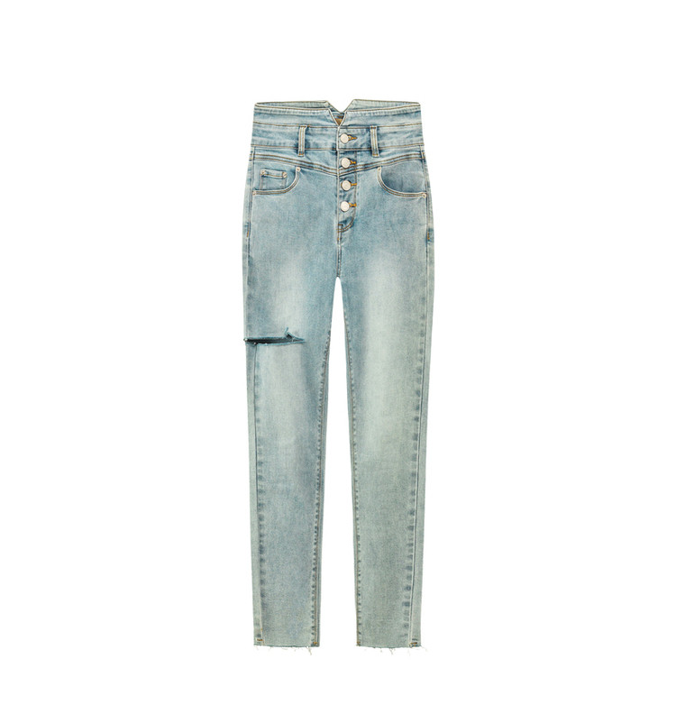 商品名称:高腰修身牛仔裤女夏季韩版小众百搭破洞小脚裤子潮 037715