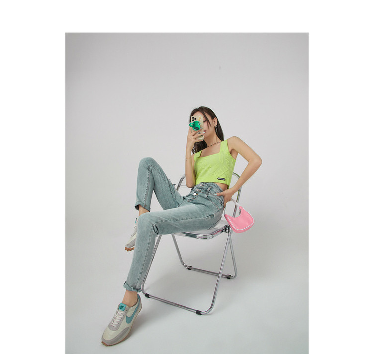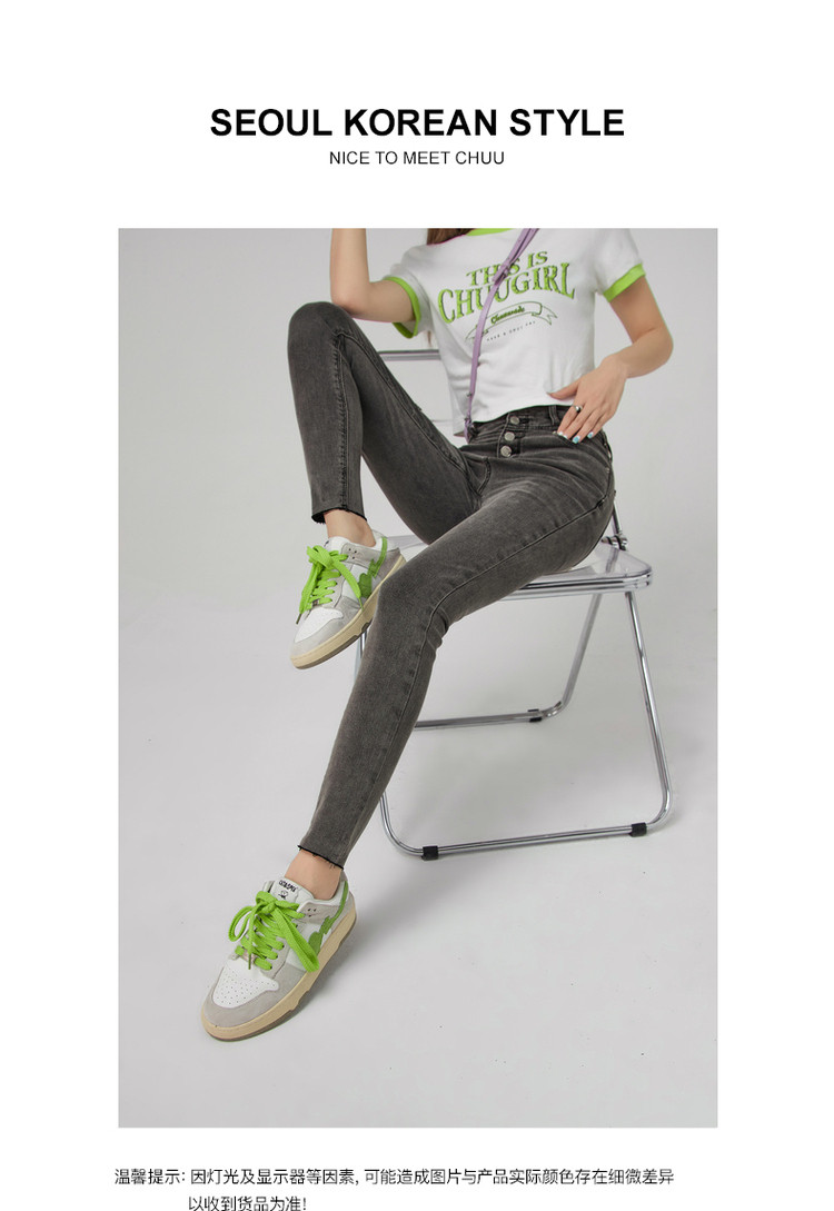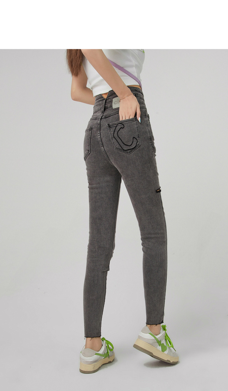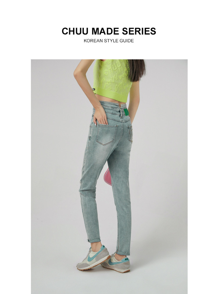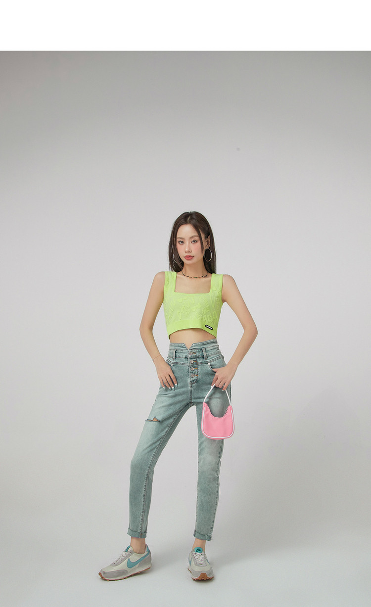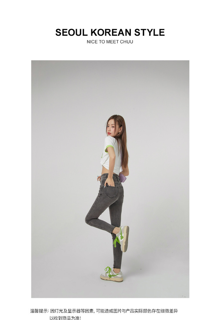 商品名称:高腰修身牛仔裤女夏季韩版小众百搭破洞小脚裤子潮 037715
