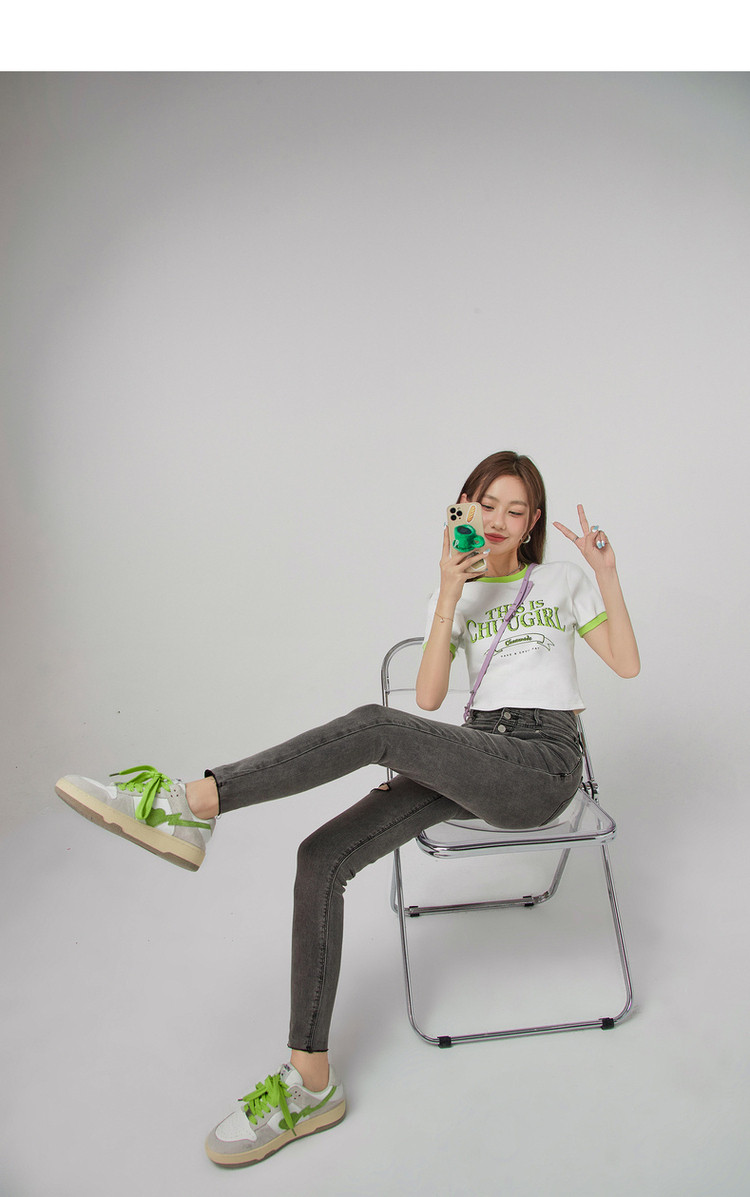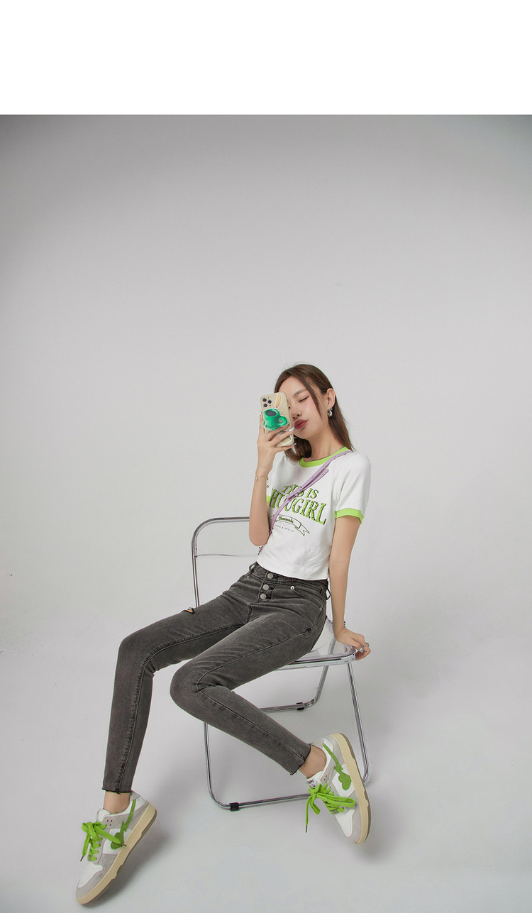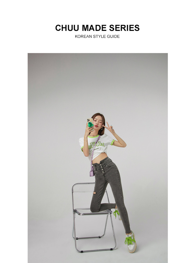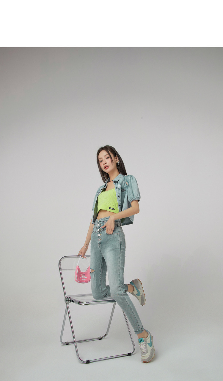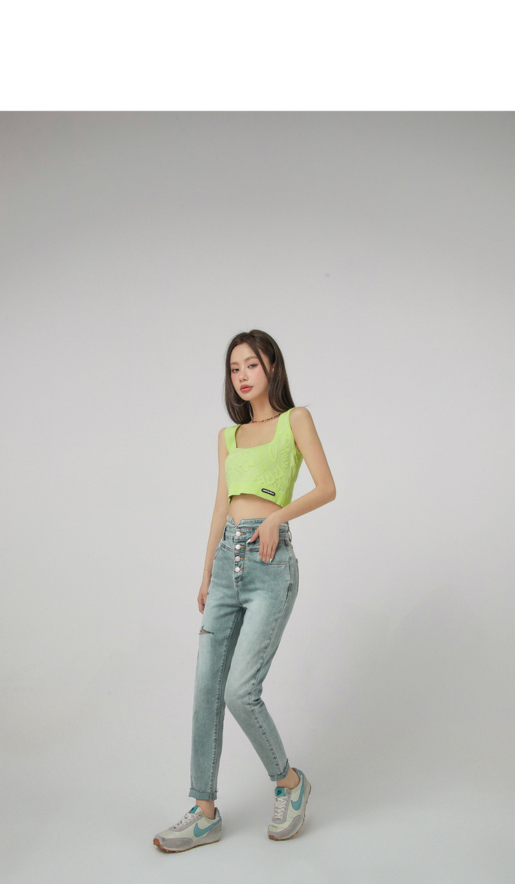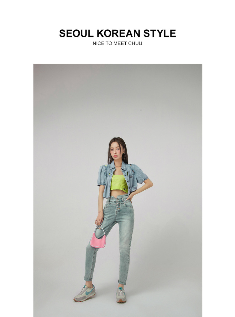 商品名称:高腰修身牛仔裤女夏季韩版小众百搭破洞小脚裤子潮 037715