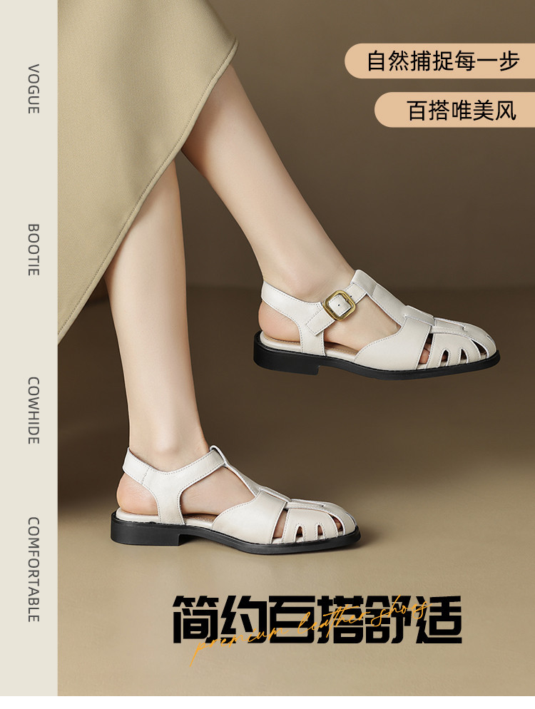 商品名称:舒适平底包头凉鞋女春夏季镂空法式百搭罗马凉鞋猪笼鞋 183386