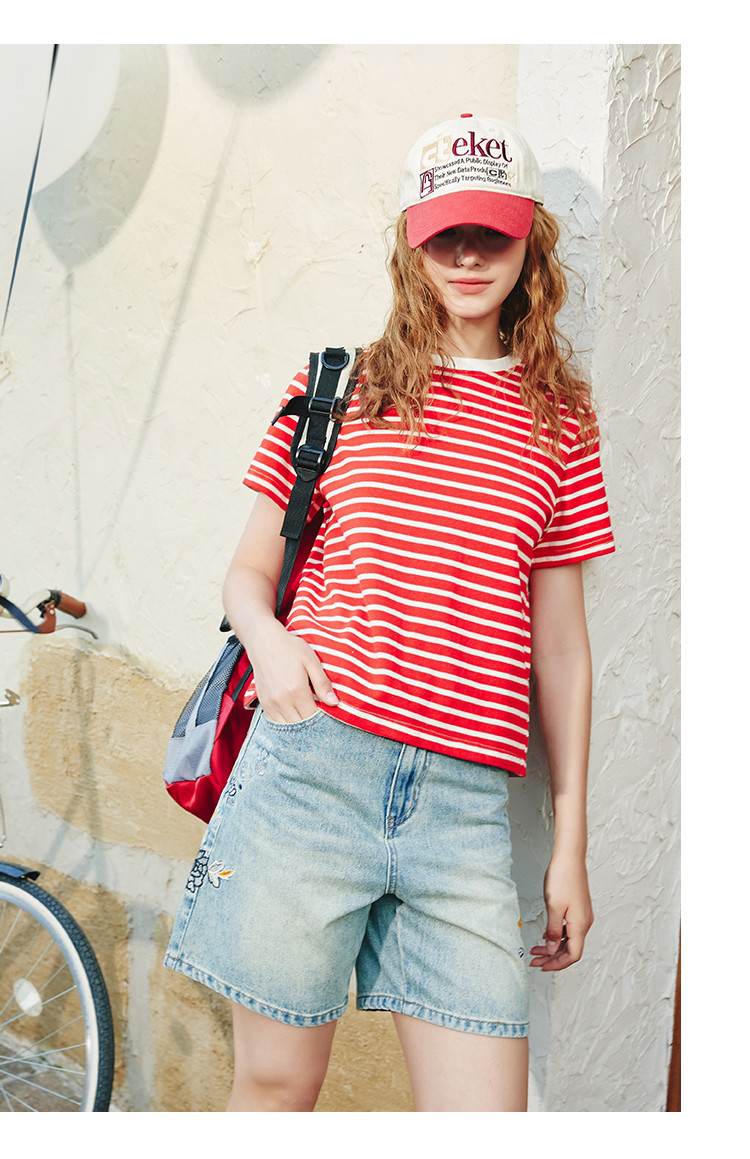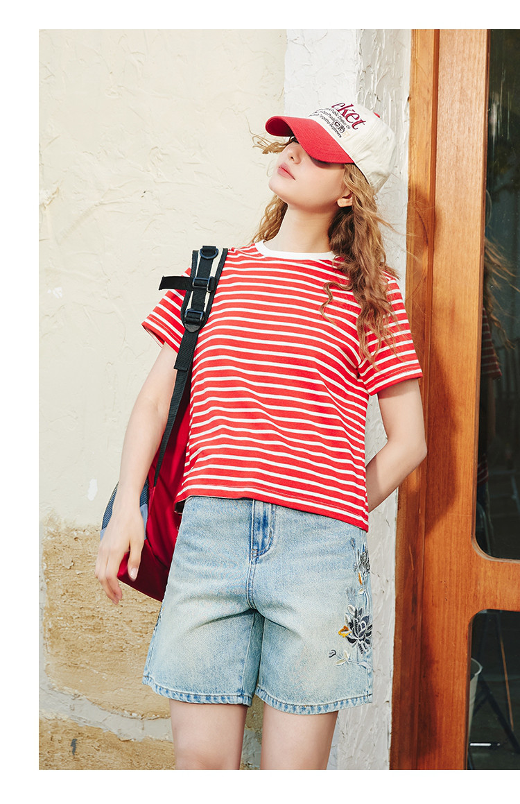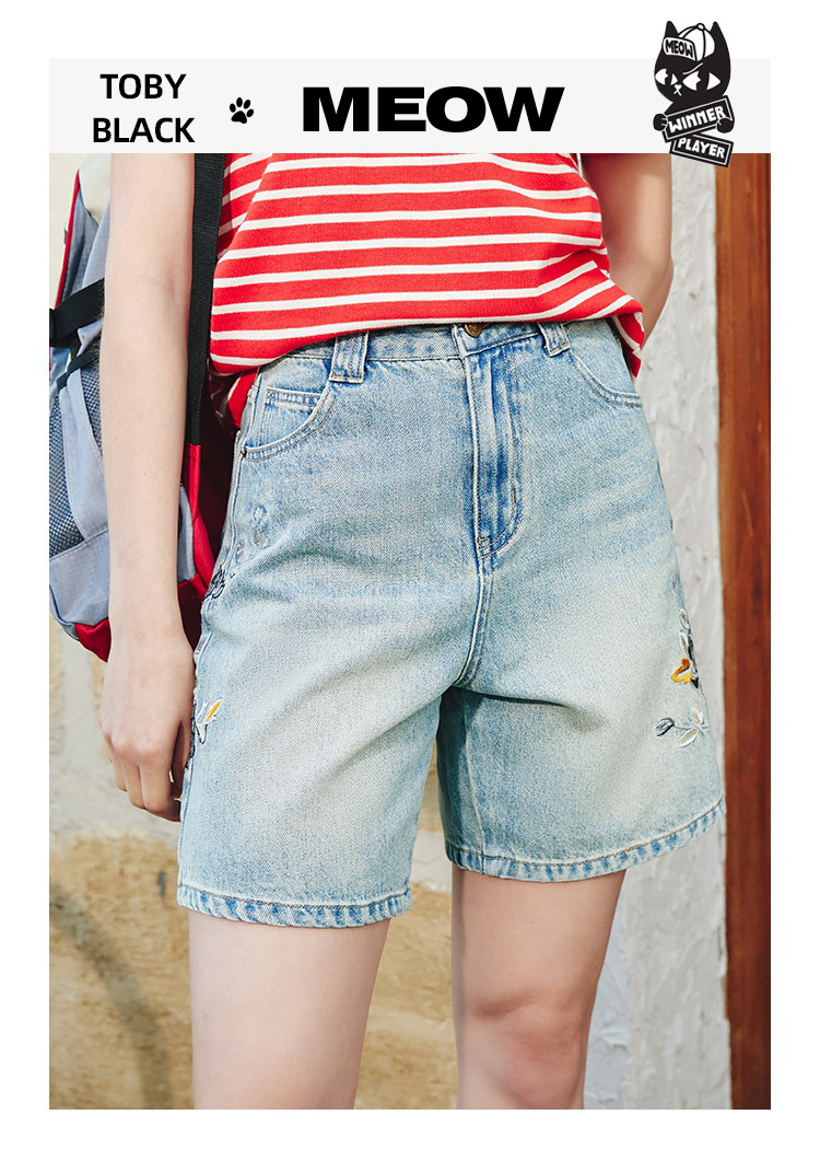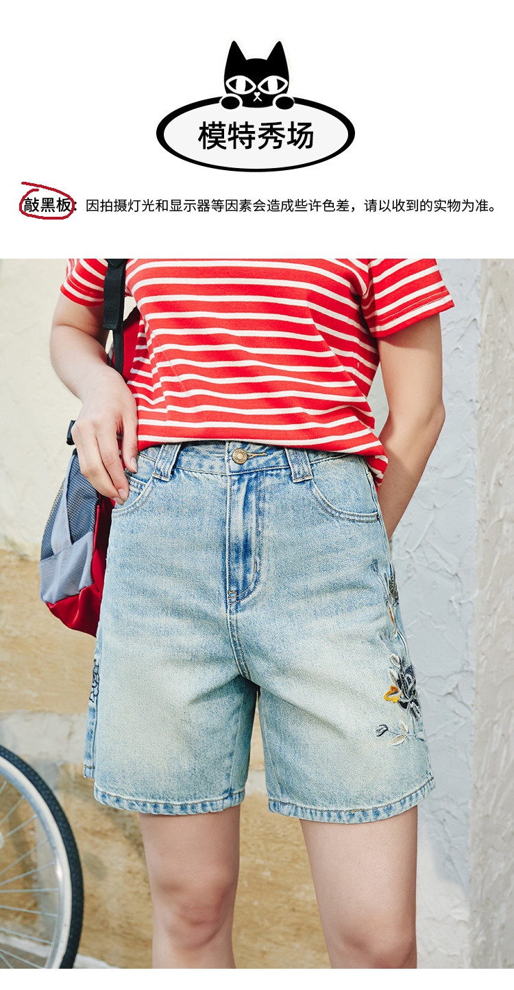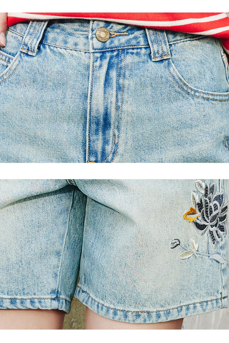 商品名称:重工刺绣慵懒休闲百搭短款直筒裤夏季高腰个性女式牛仔裤 045917