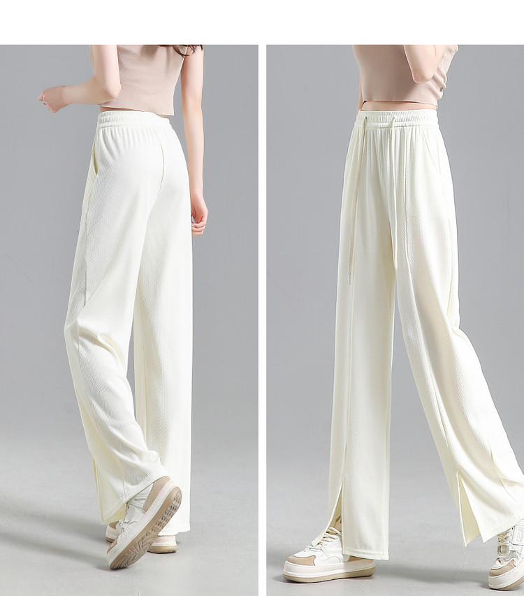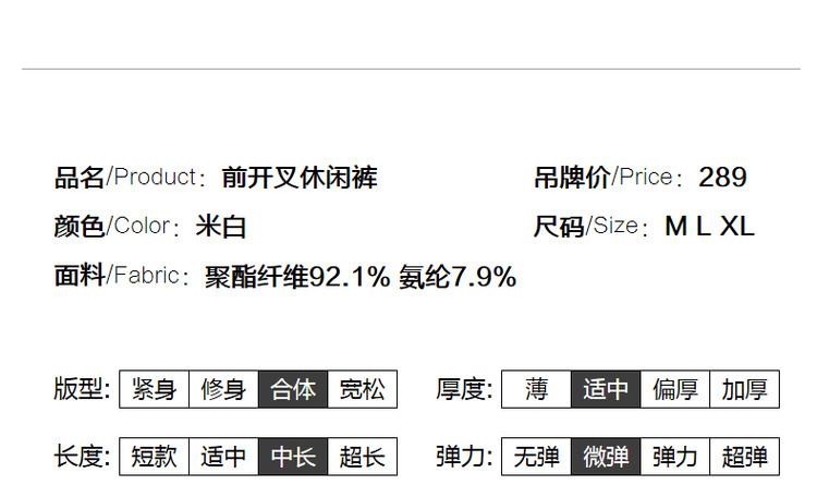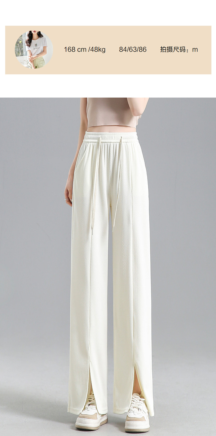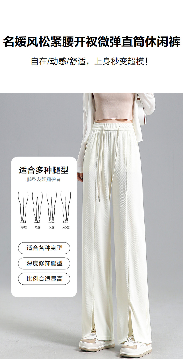 商品名称:【名媛开衩休闲裤】春秋季松紧腰长裤微弹直筒女裤子女 195265