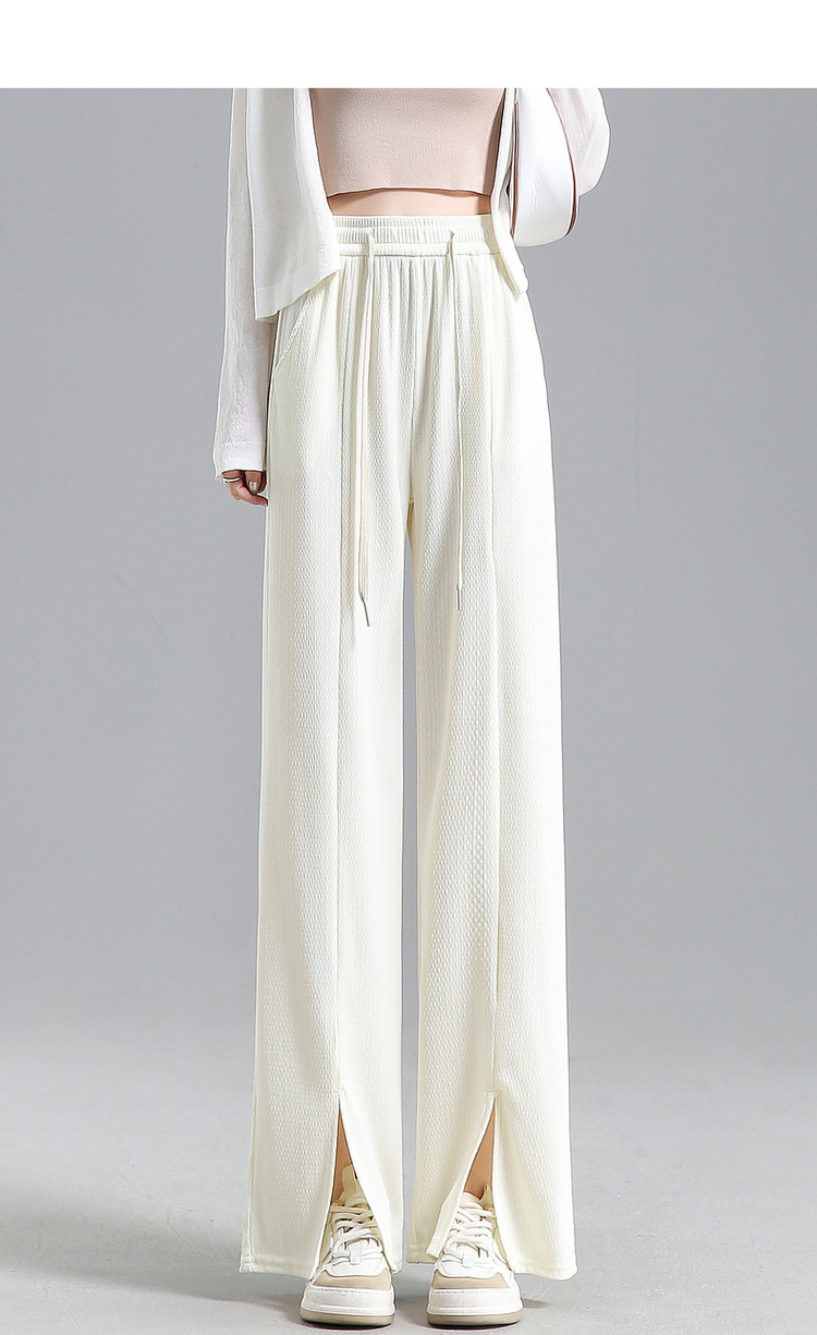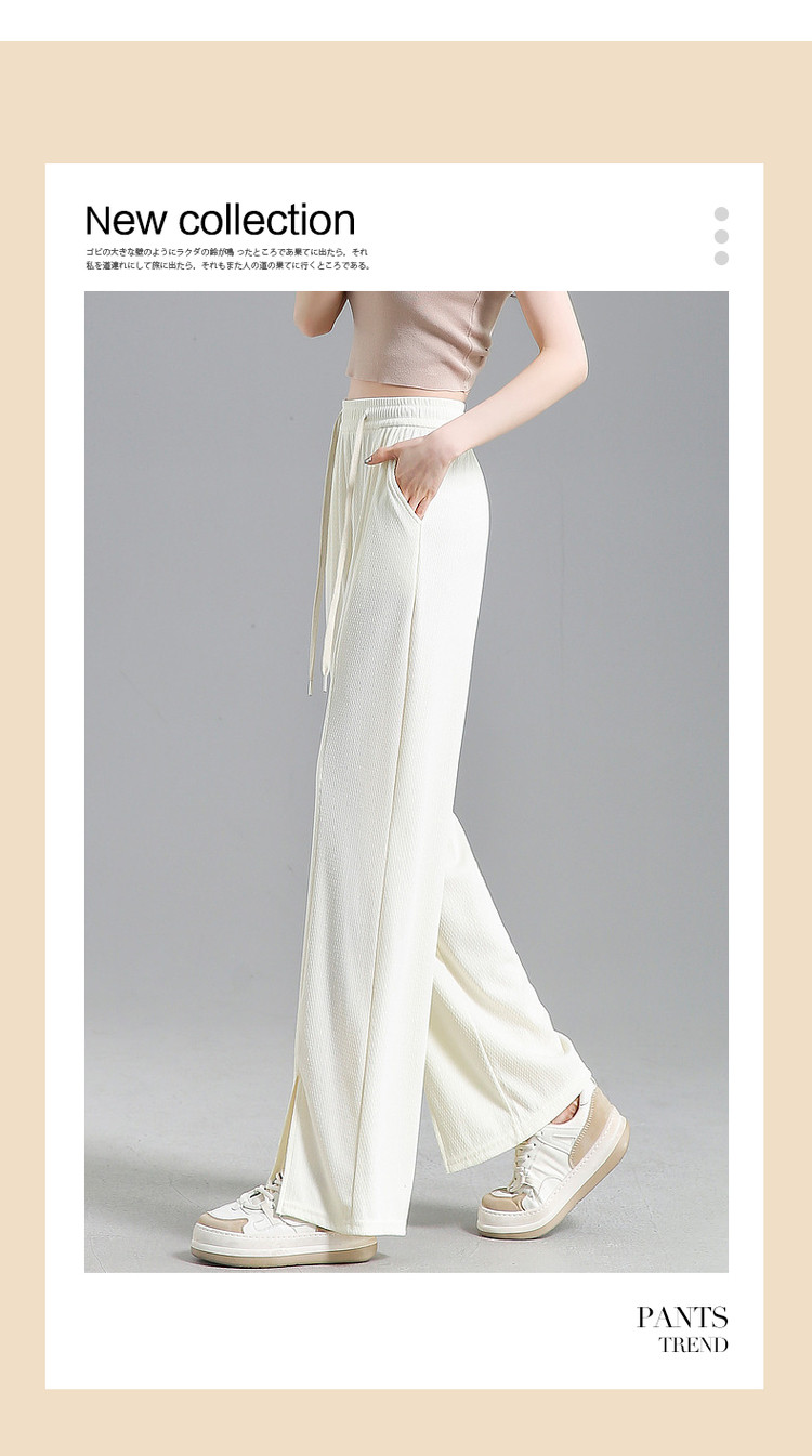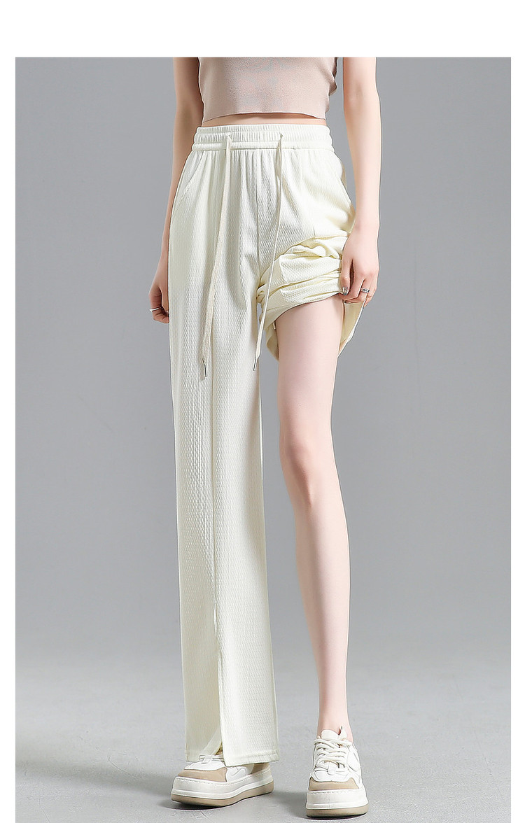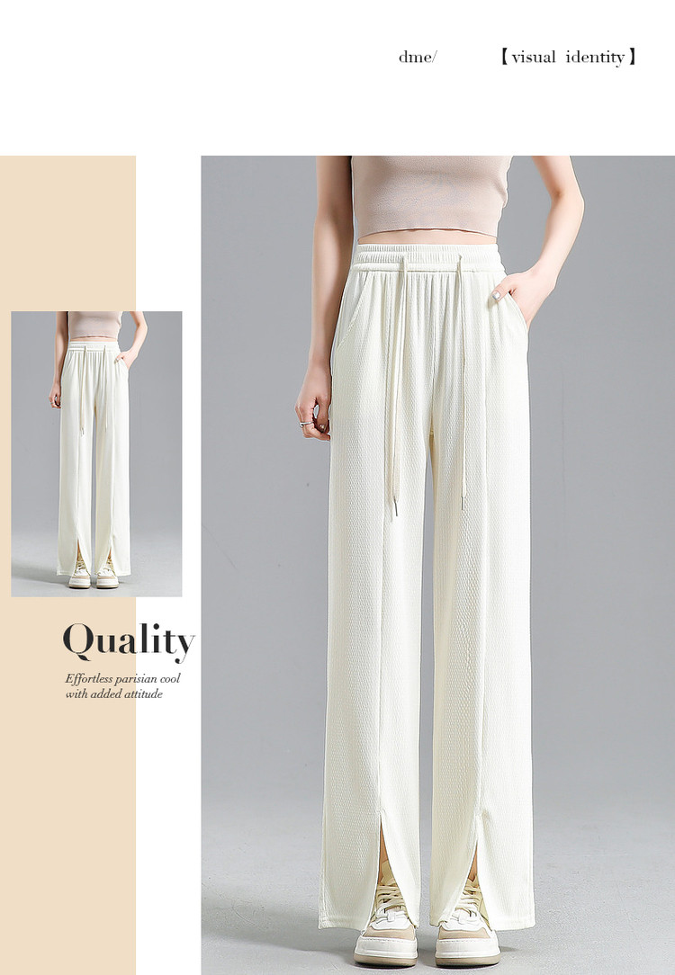 商品名称:【名媛开衩休闲裤】春秋季松紧腰长裤微弹直筒女裤子女 195265