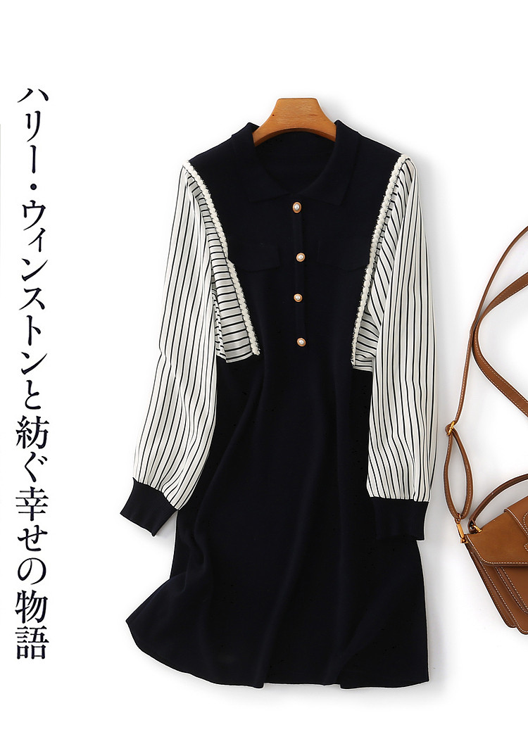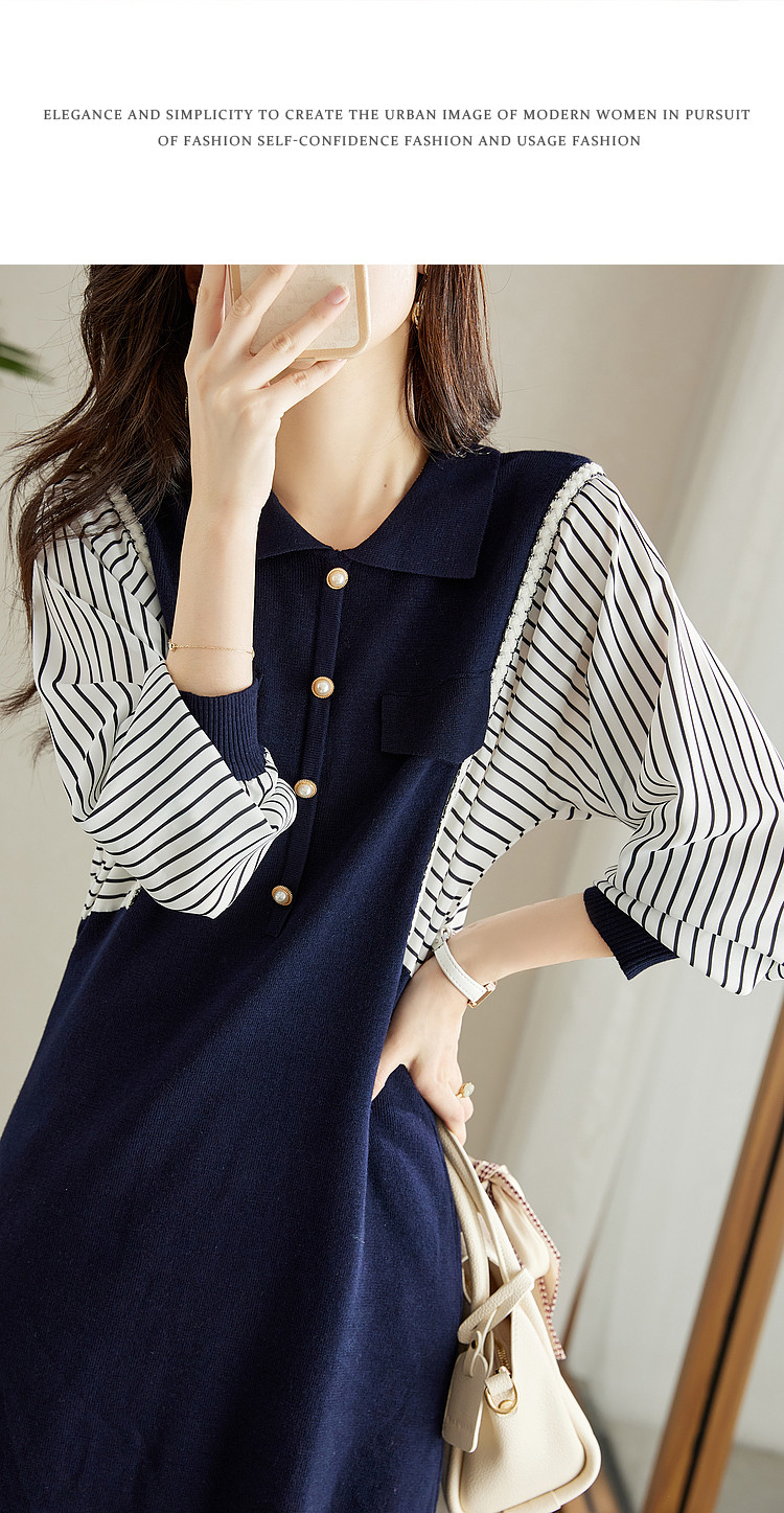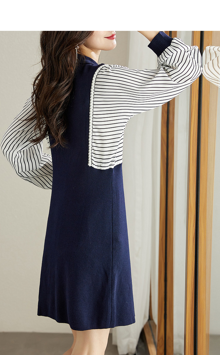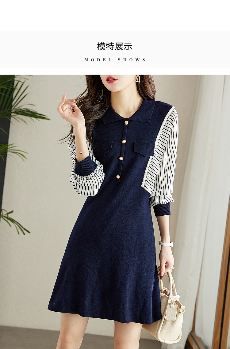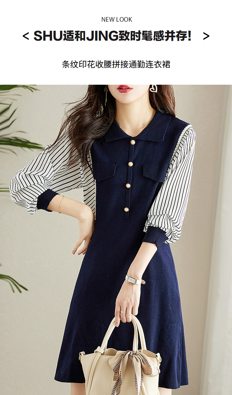 商品名称:【条纹印花】春秋季收腰拼接通勤女士连衣裙女 101505