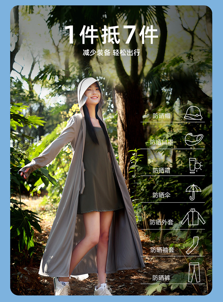 商品名称:防晒衣女运动外套防紫外线透气户外长款风衣凉感轻薄夏款防晒服 609165