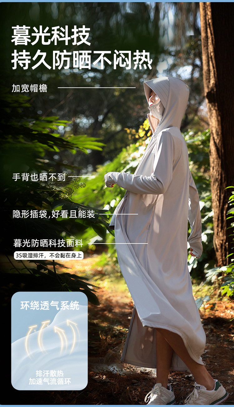 防晒衣女运动外套防紫外线透气户外长款风衣凉感轻薄夏款防晒服 609165