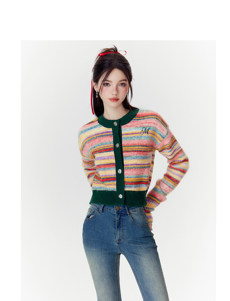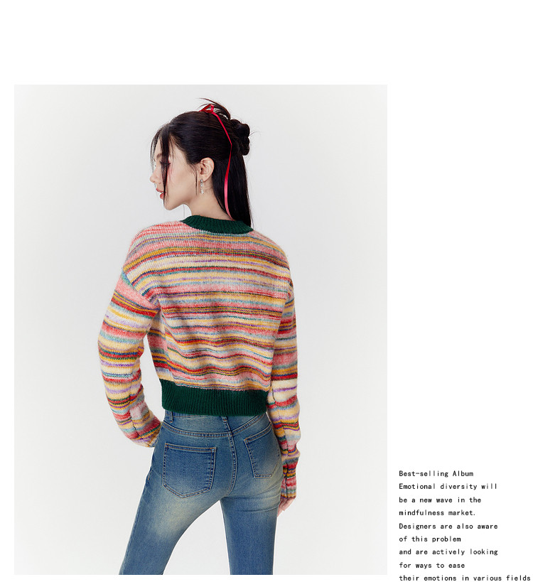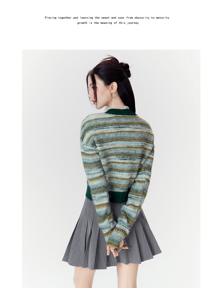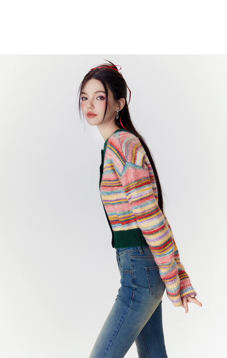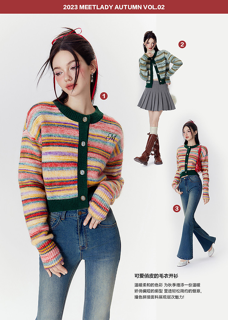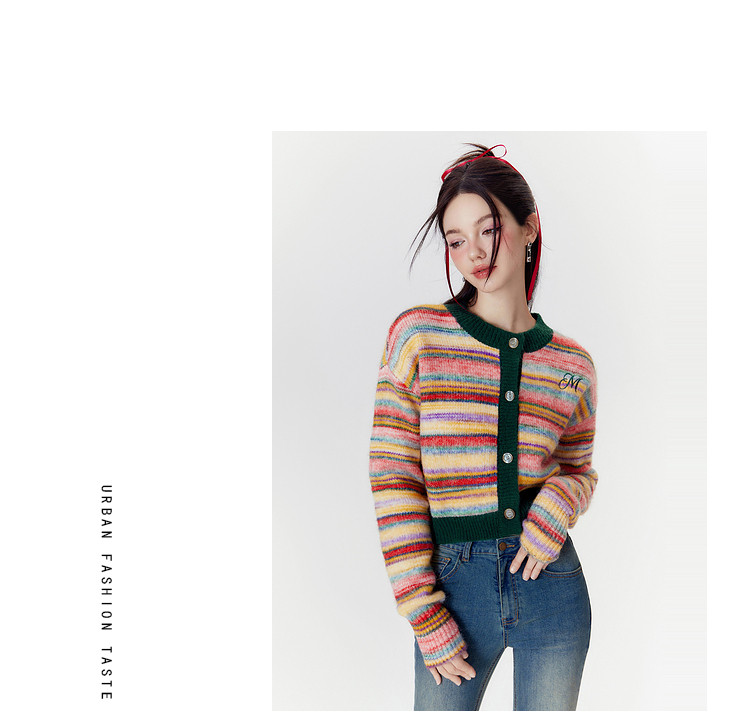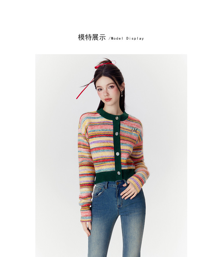商品名称:春秋美式复古撞色针织毛衣开衫女设计感显瘦外套 639892