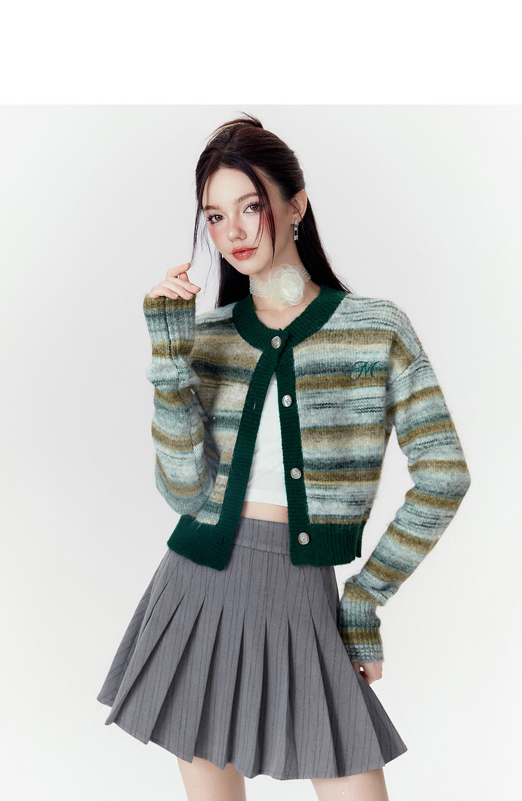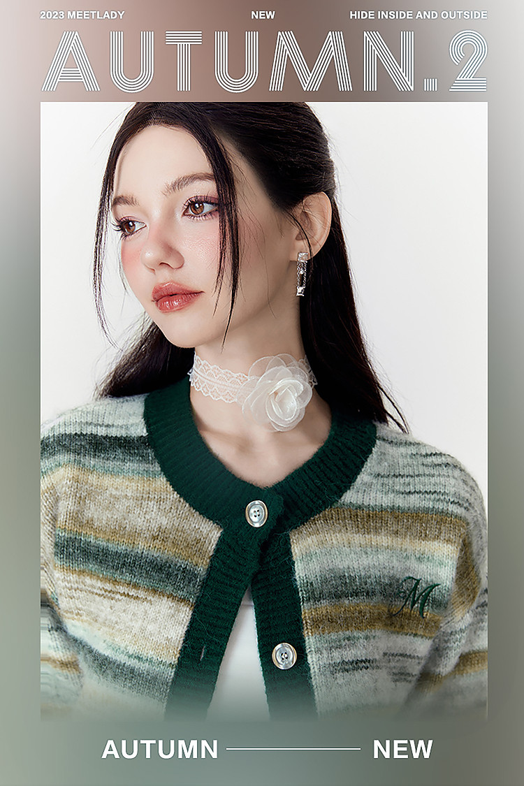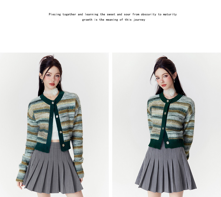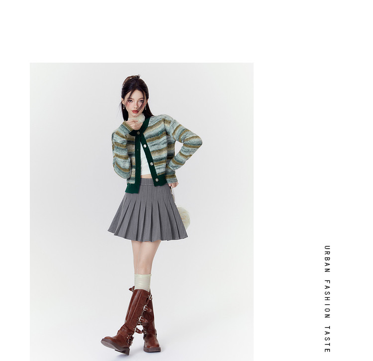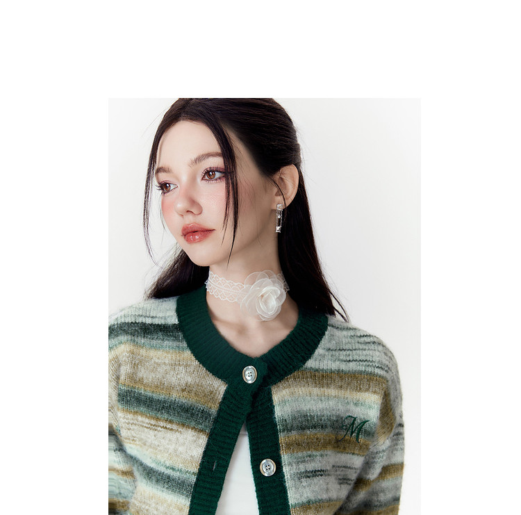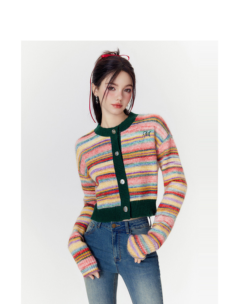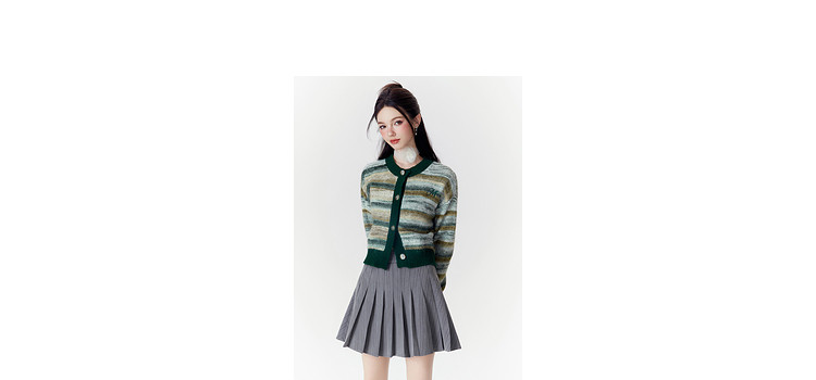 商品名称:春秋美式复古撞色针织毛衣开衫女设计感显瘦外套 639892
