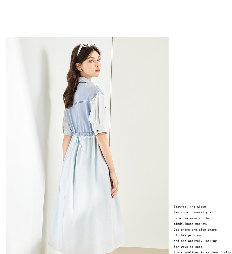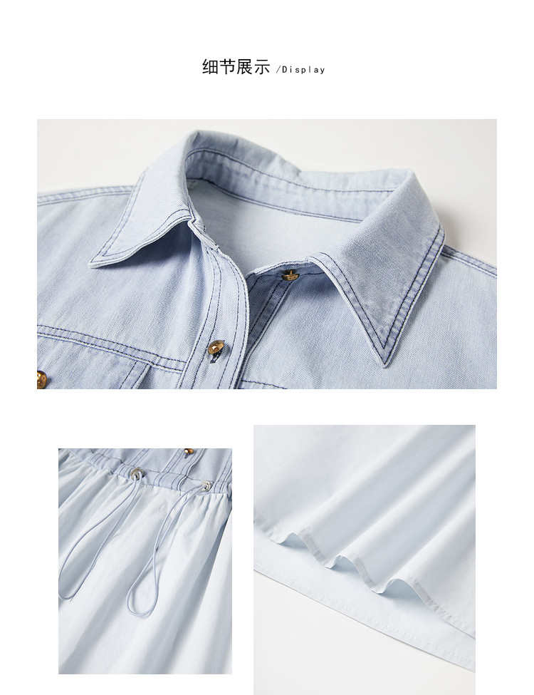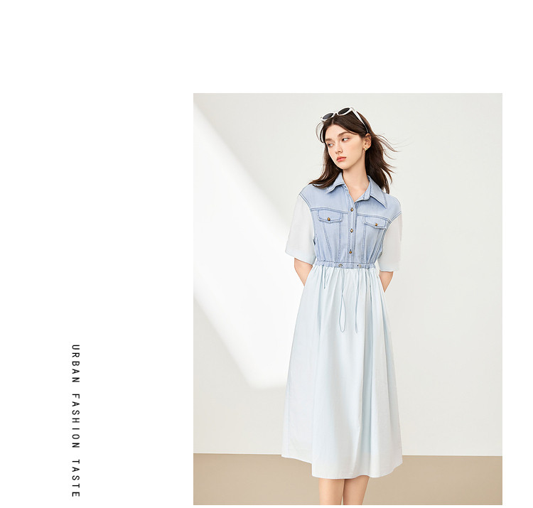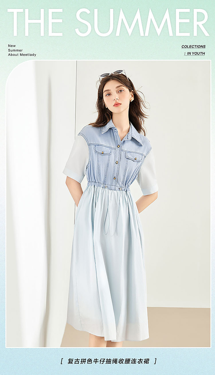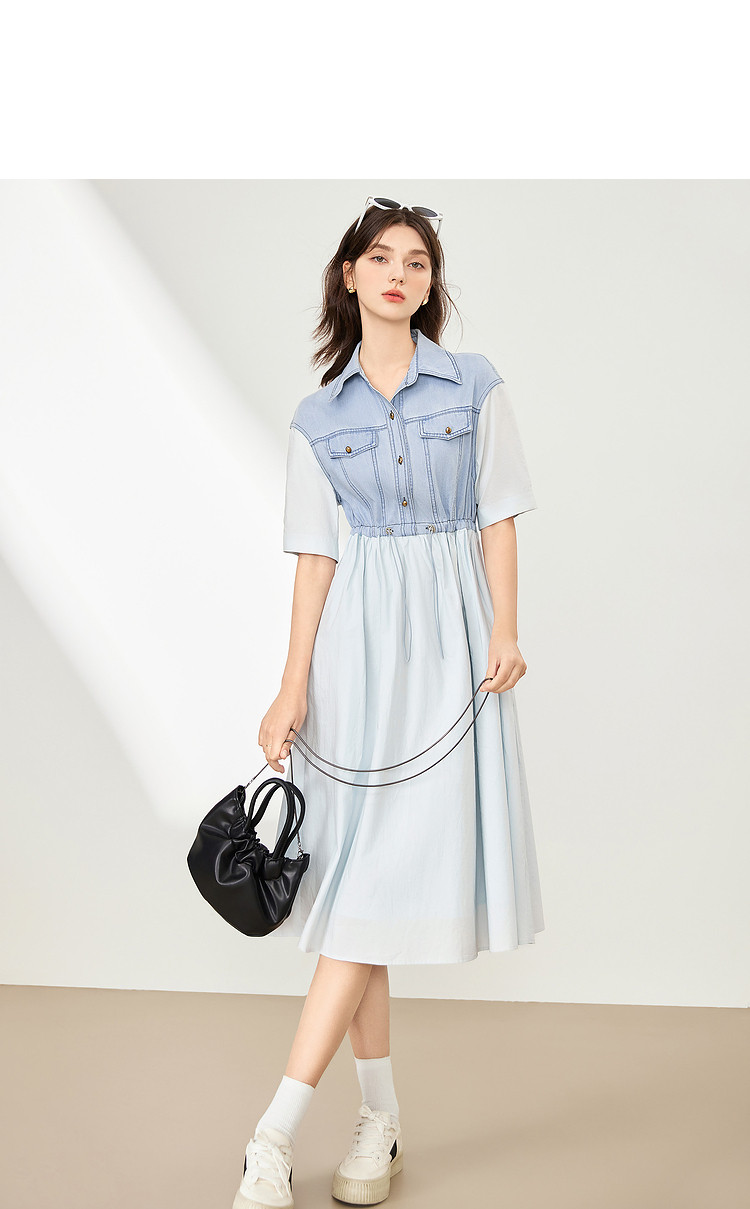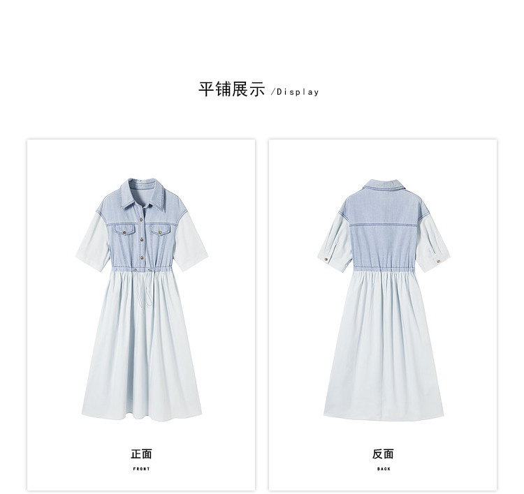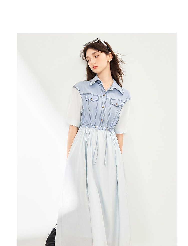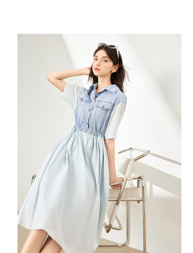 商品名称:【2024夏季】简约复古拼接牛仔连衣裙女休闲抽绳收腰裙子 738708