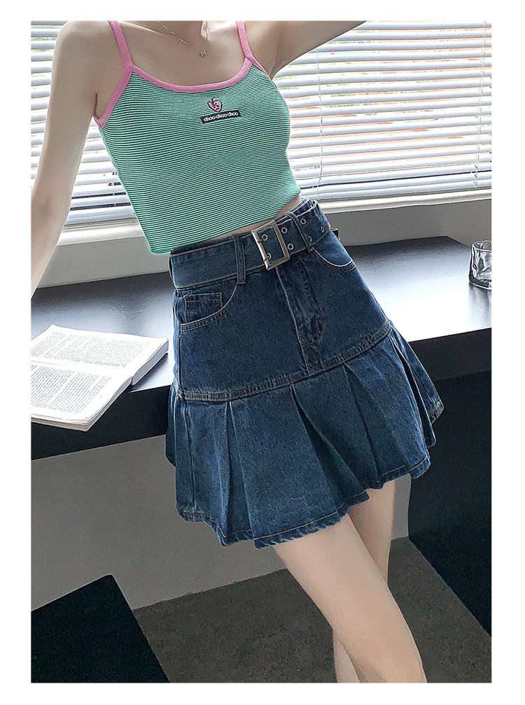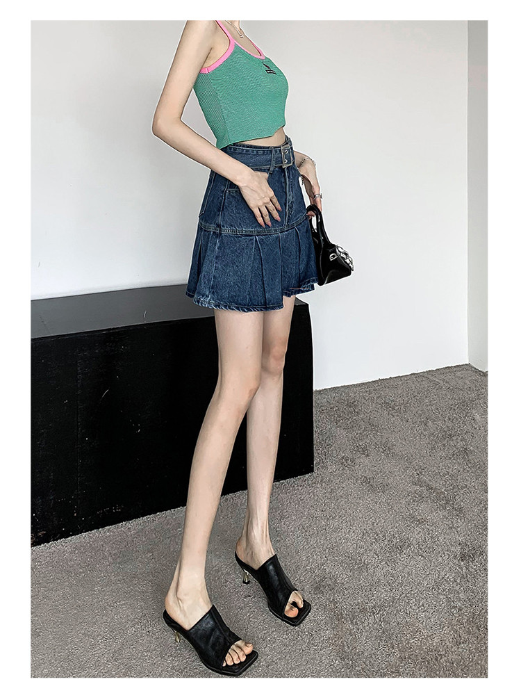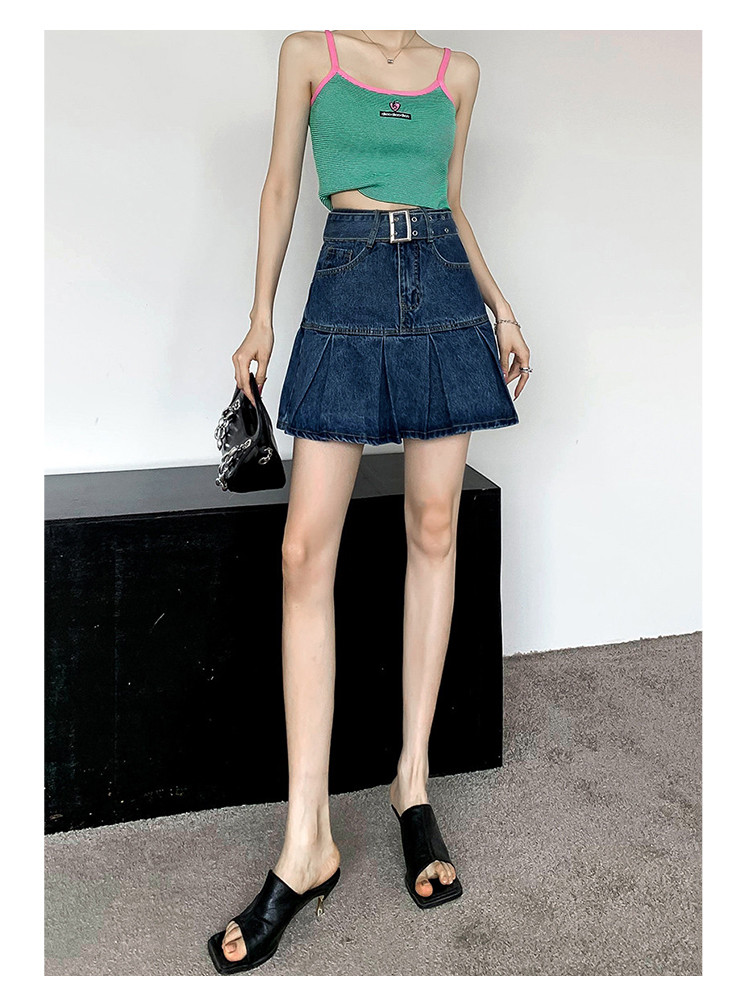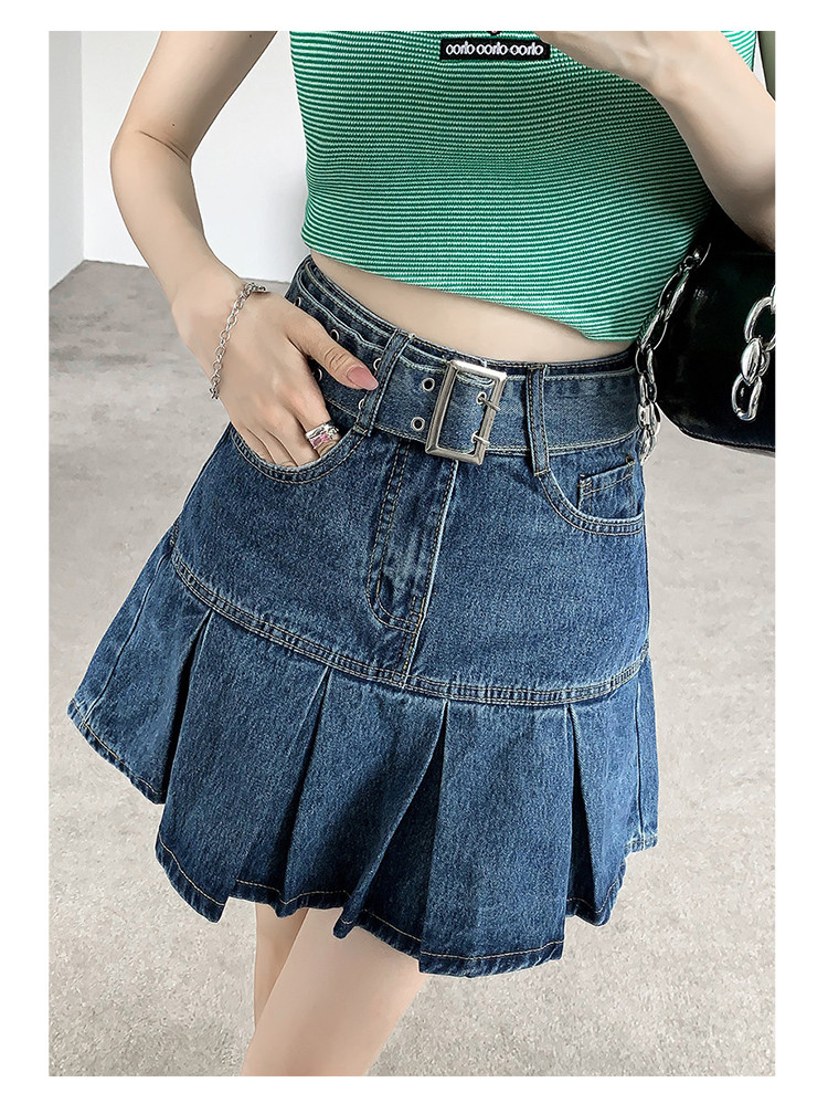 商品名称:高腰牛仔短裙显瘦A字裙百搭甜酷半身裙女 876035