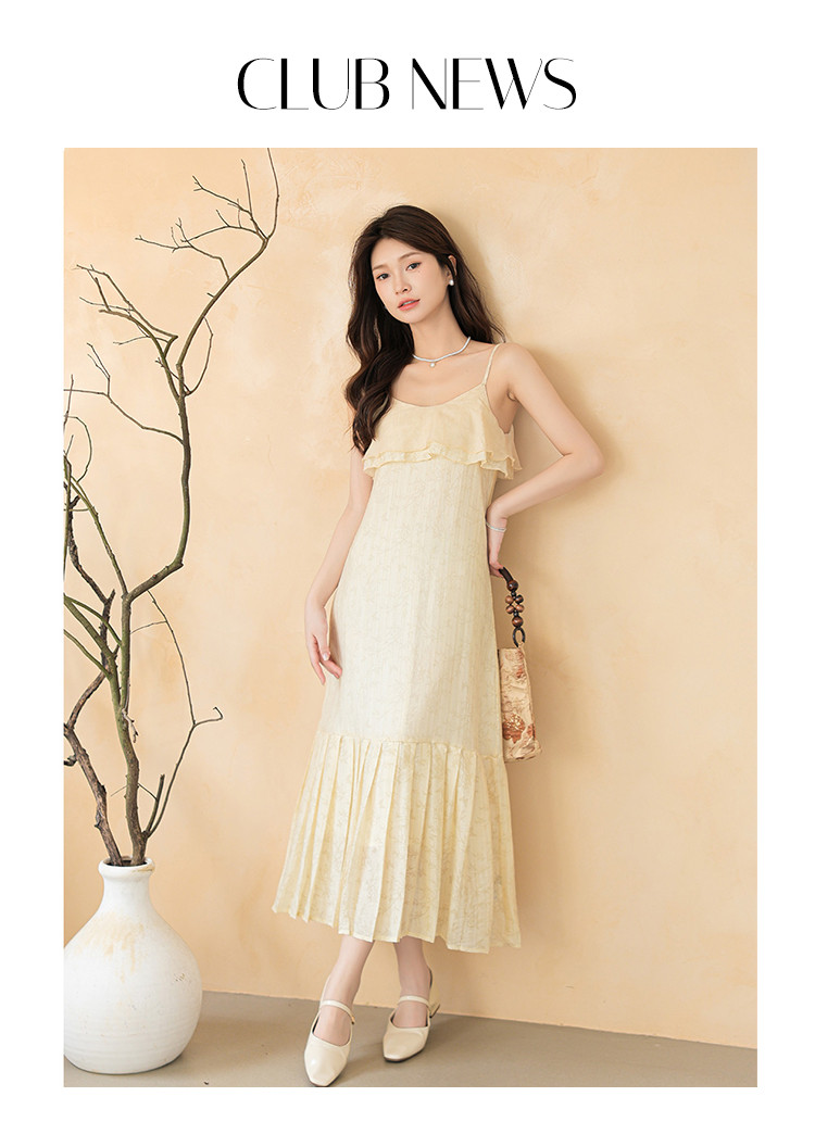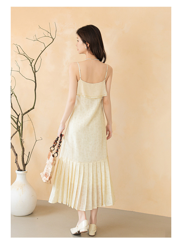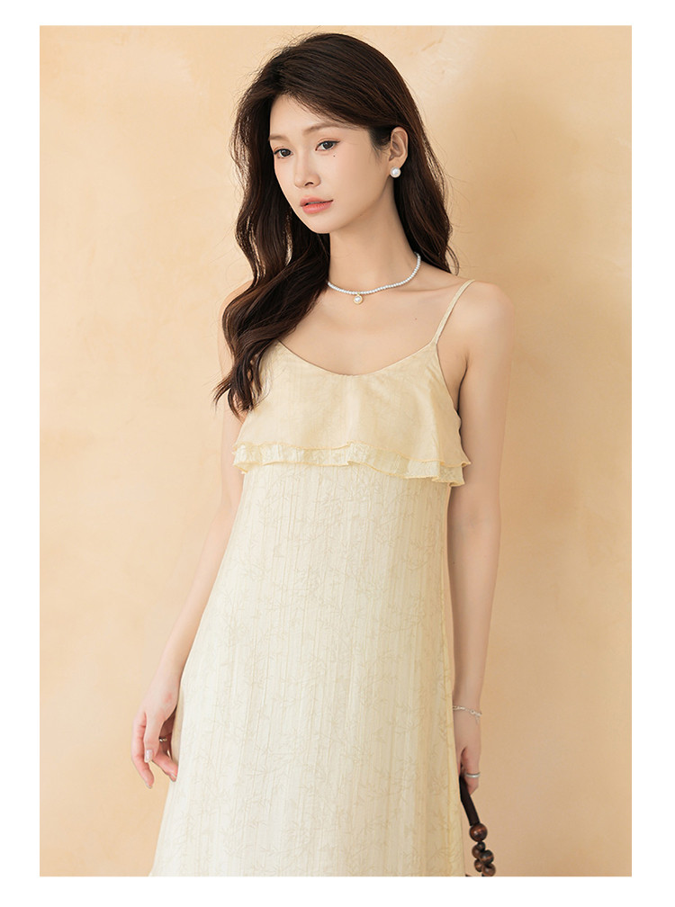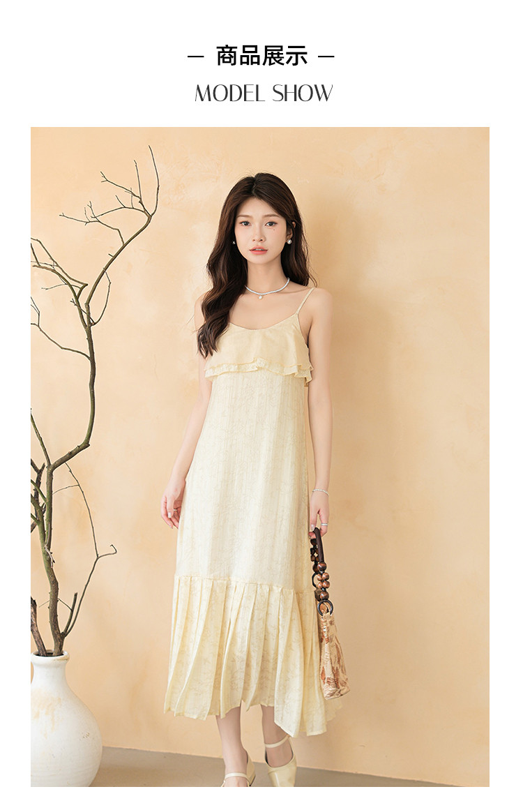 新中式贵气纹理感拼接吊带裙清冷气质风A字裙连衣裙女 317955