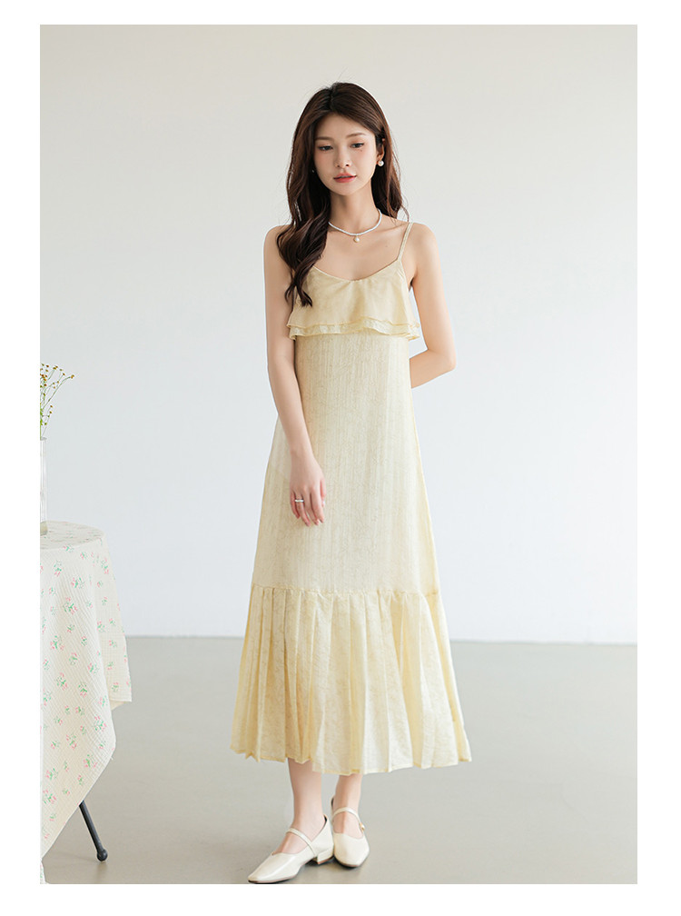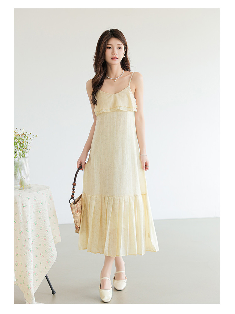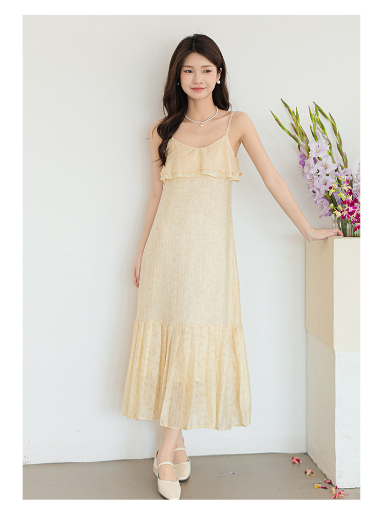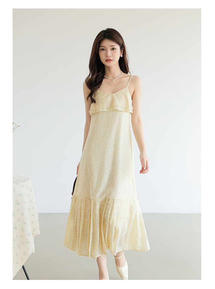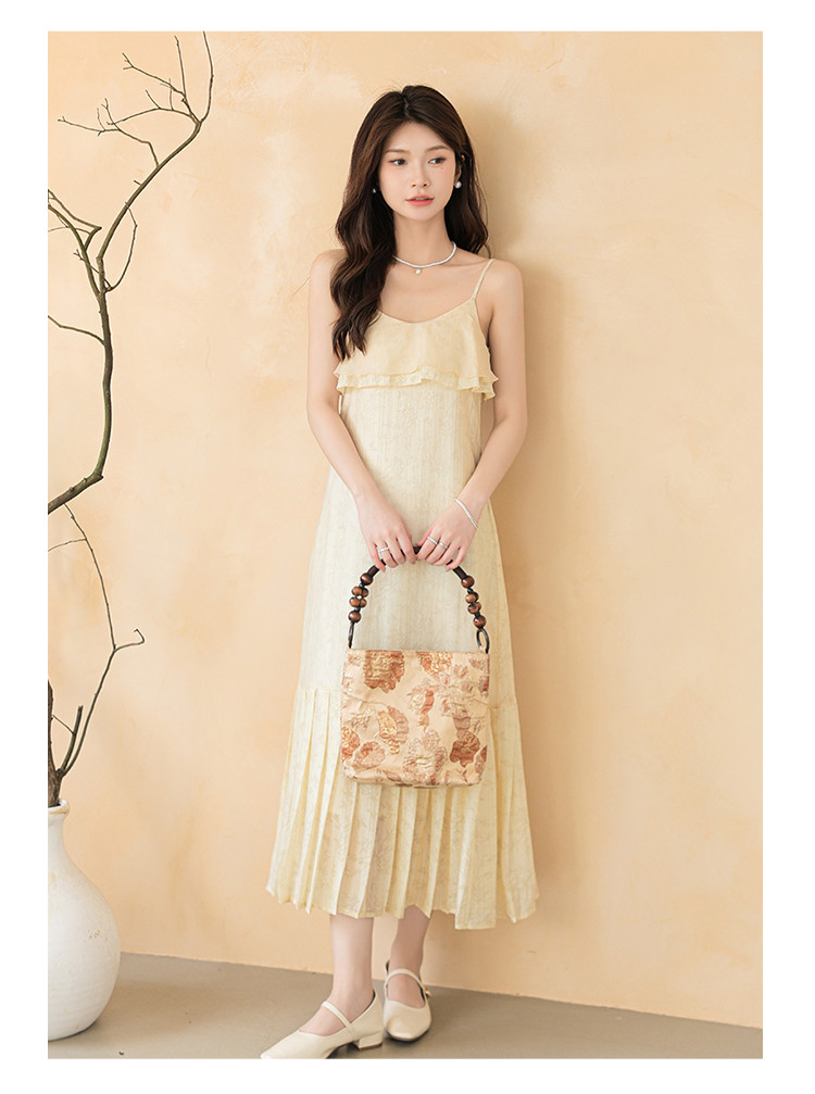 新中式贵气纹理感拼接吊带裙清冷气质风A字裙连衣裙女 317955