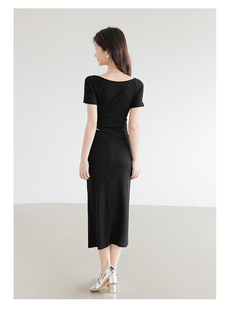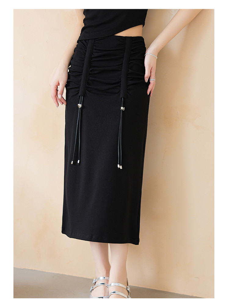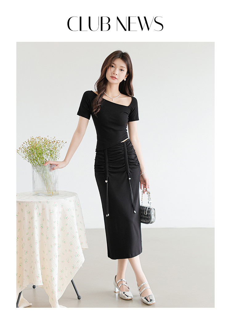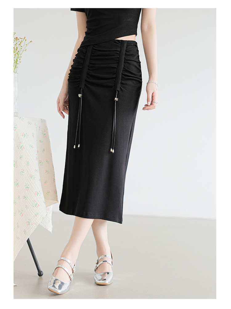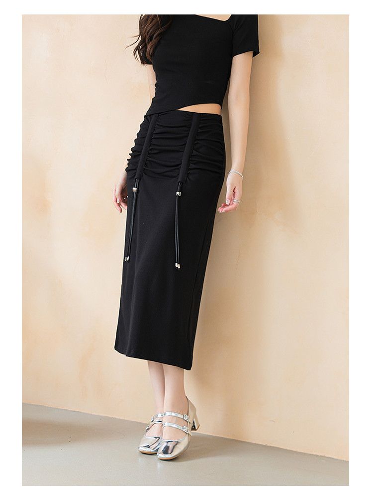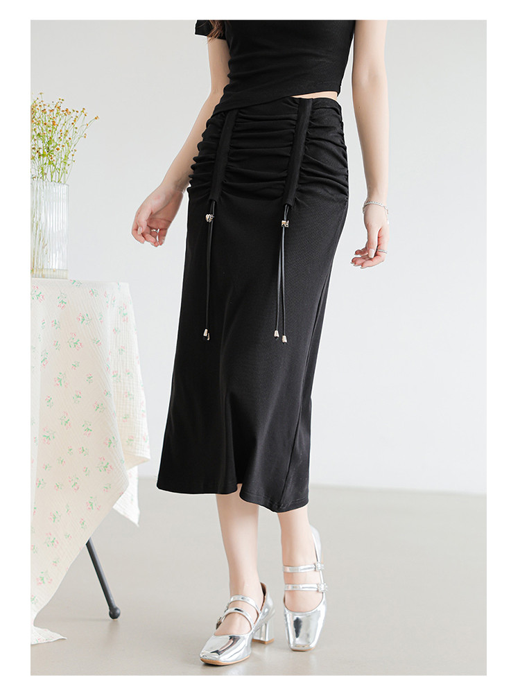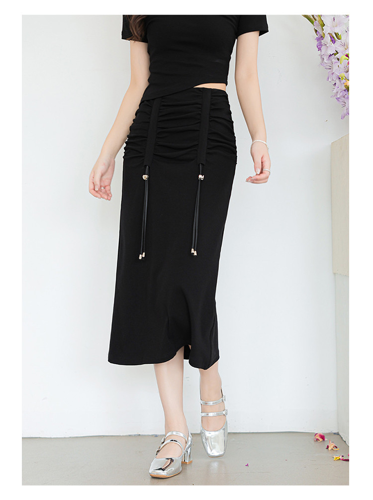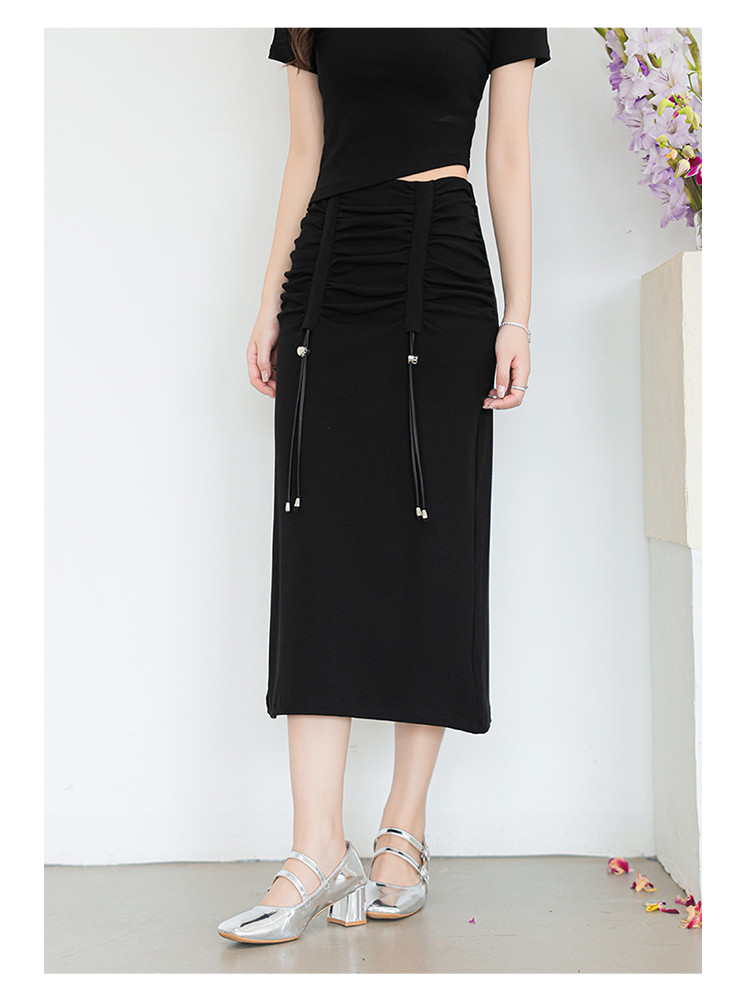 商品名称:设计感休闲简约松紧腰舒适弹力高腰显瘦抽绳H型半身裙女 215555