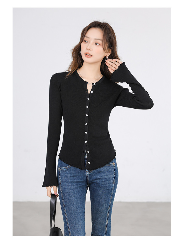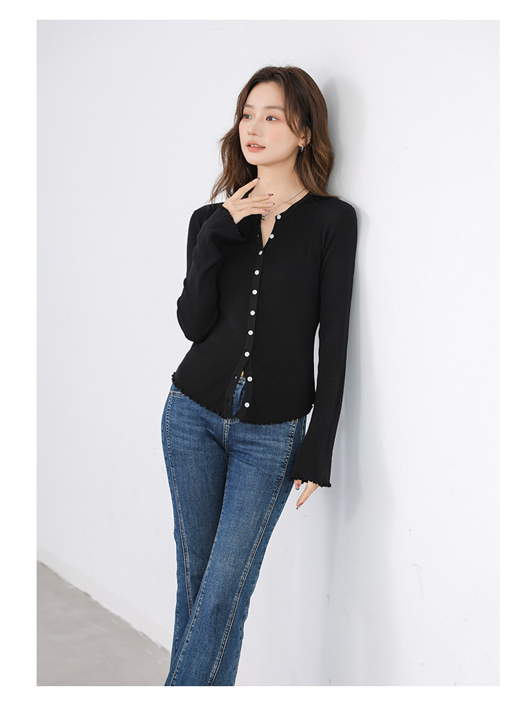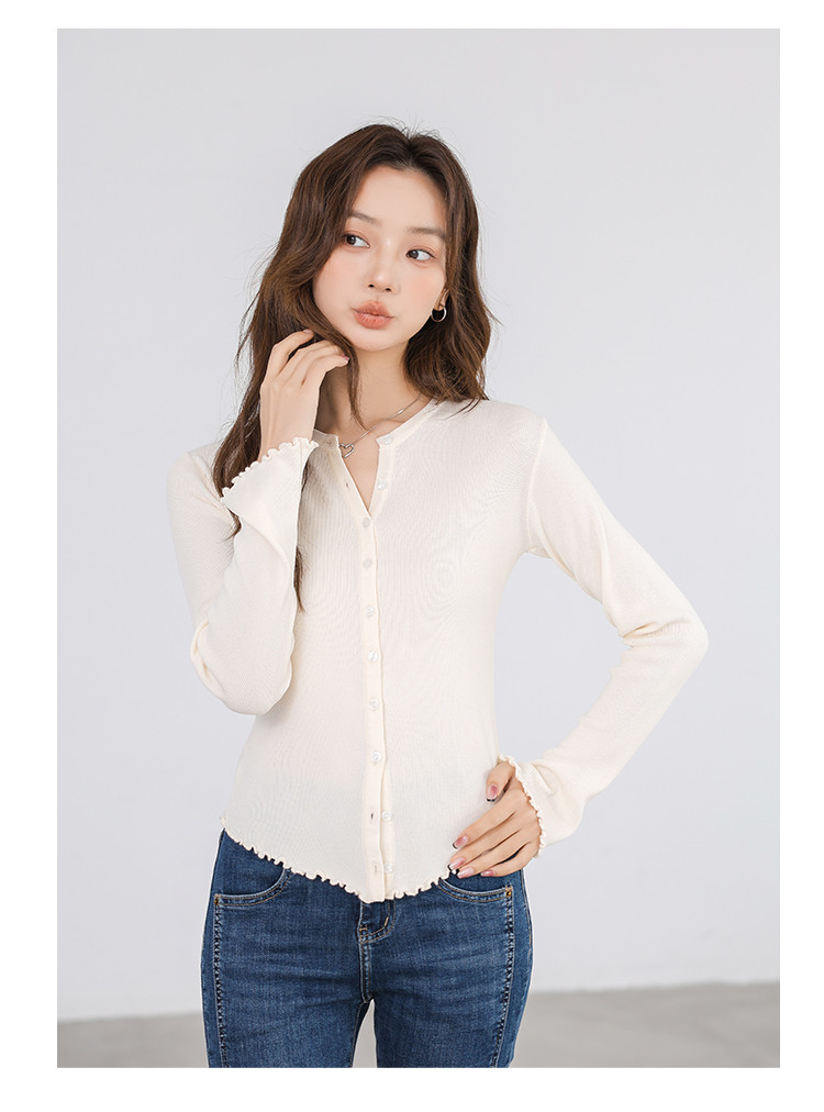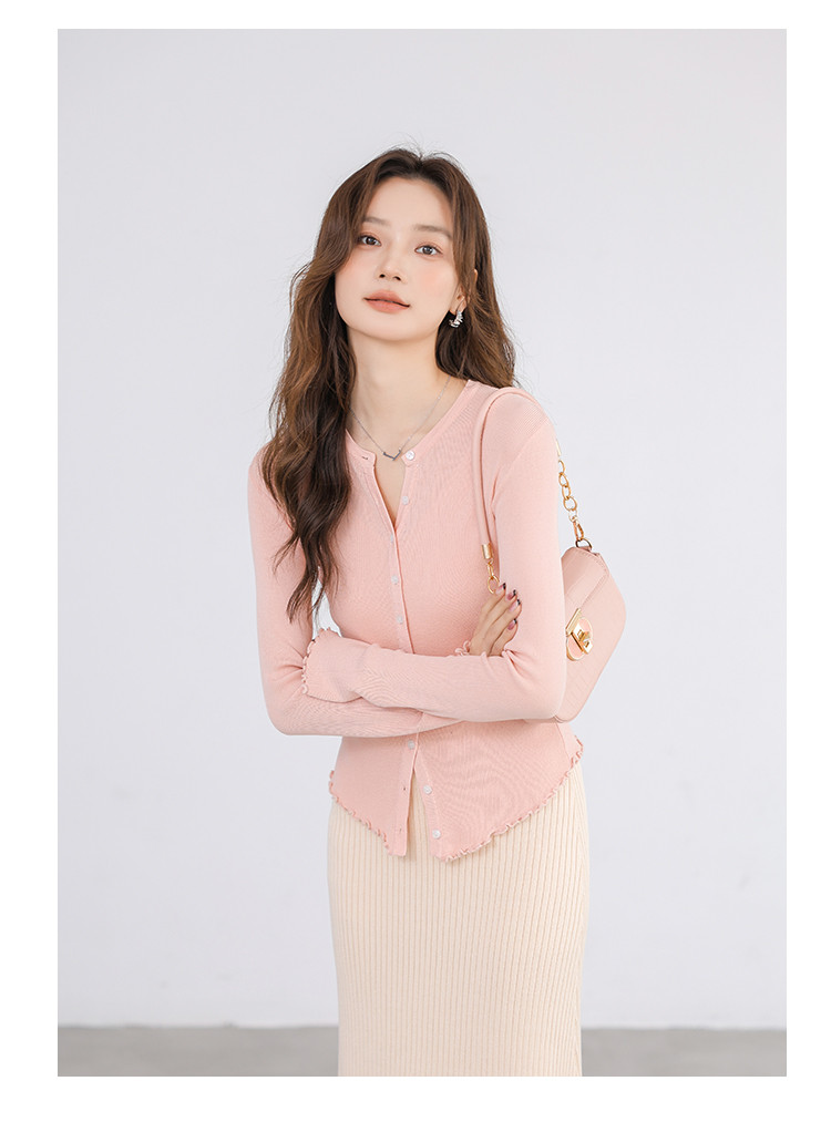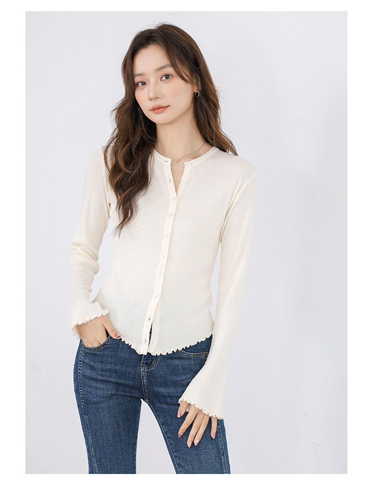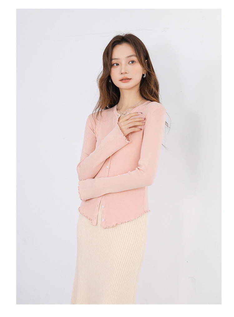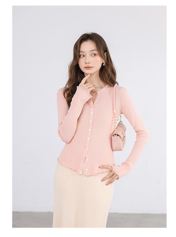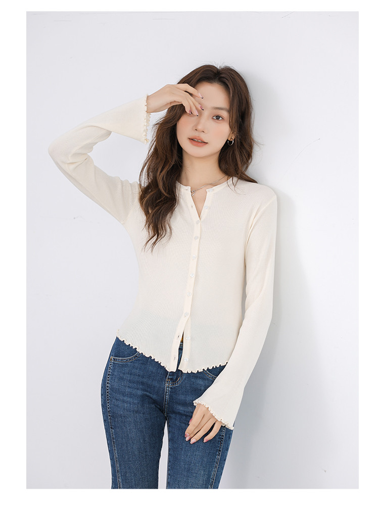 商品名称:冰丝薄款针织开衫女罩衫木耳边针织上衣空调服 542787