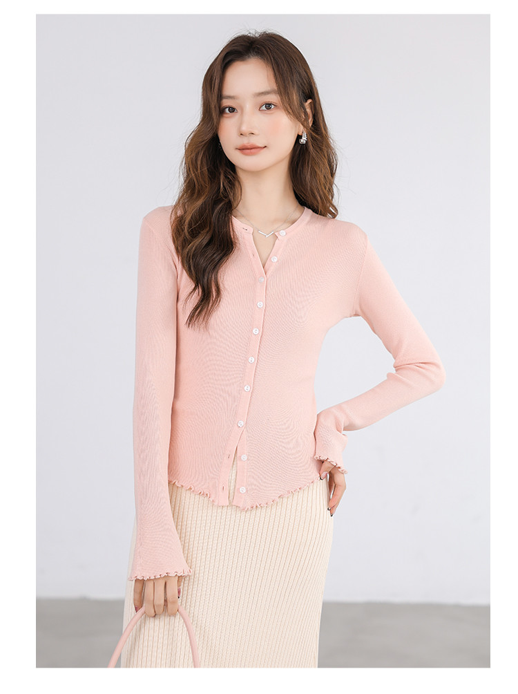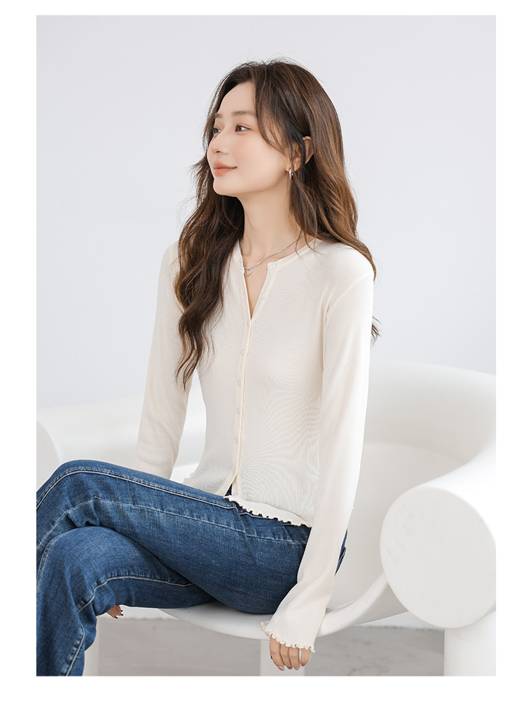 冰丝薄款针织开衫女罩衫木耳边针织上衣空调服 542787