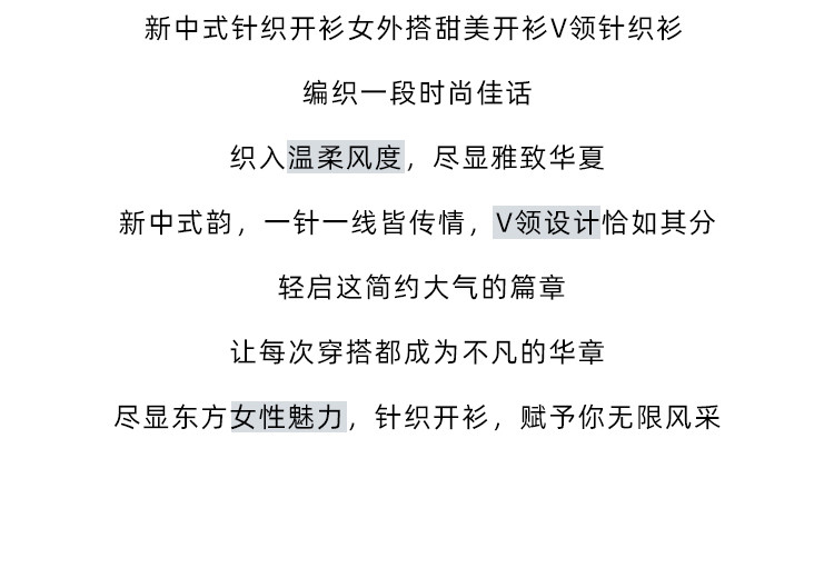 商品名称:新中式针织外搭开衫V领针织衫女气质空调衫 076931