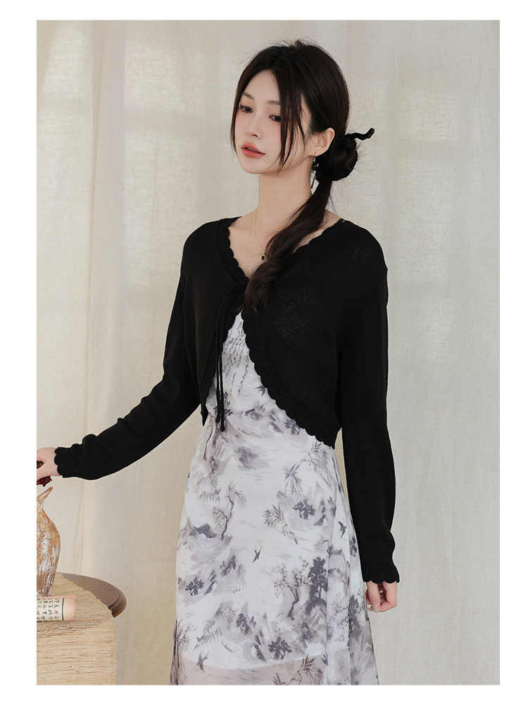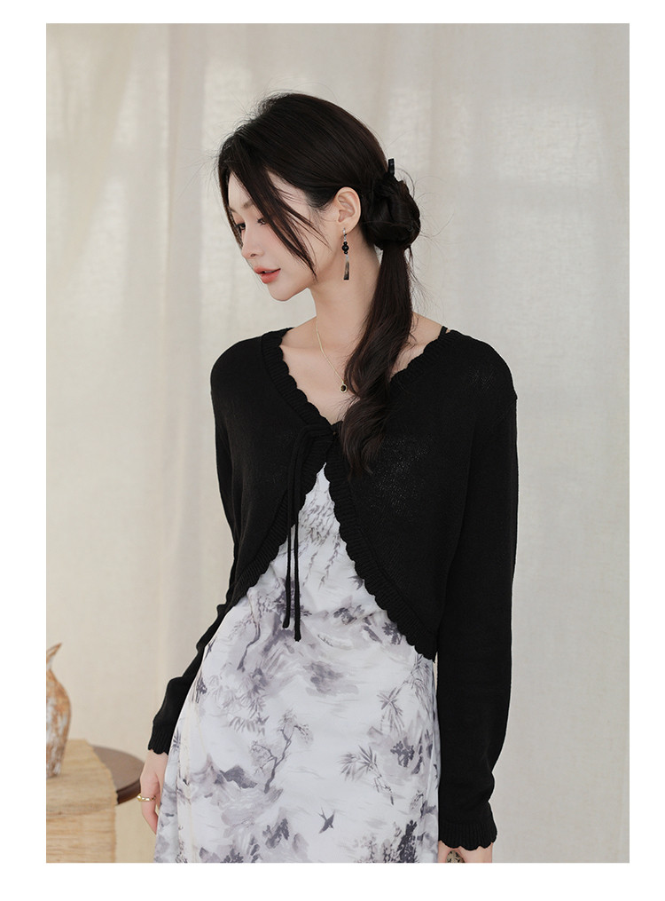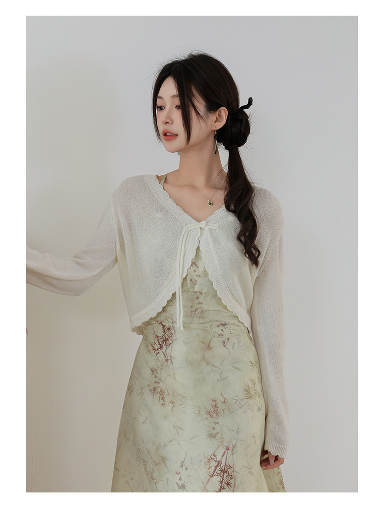 新中式针织外搭开衫V领针织衫女气质空调衫 076931