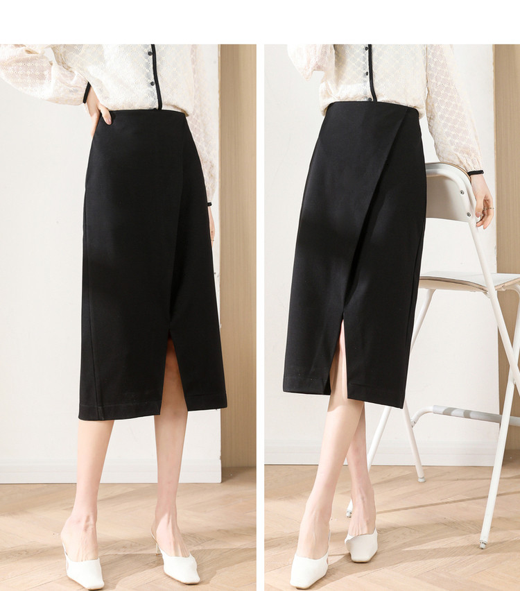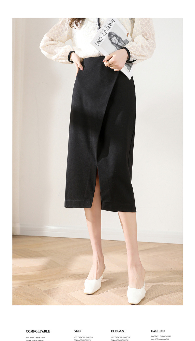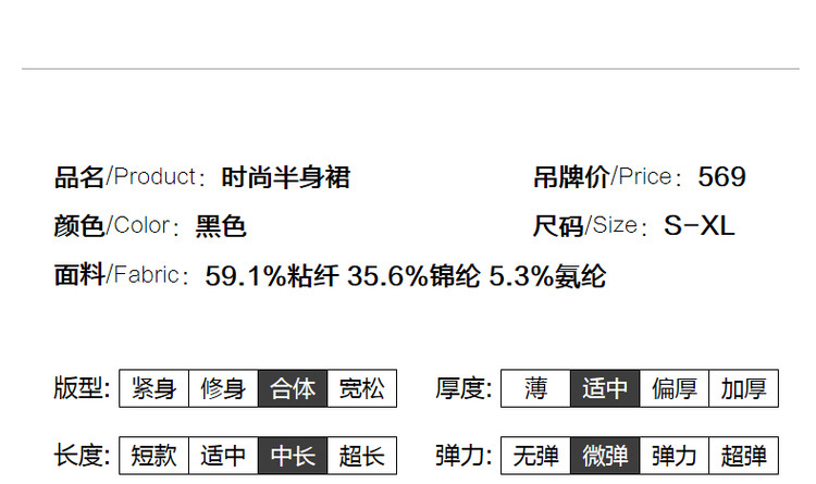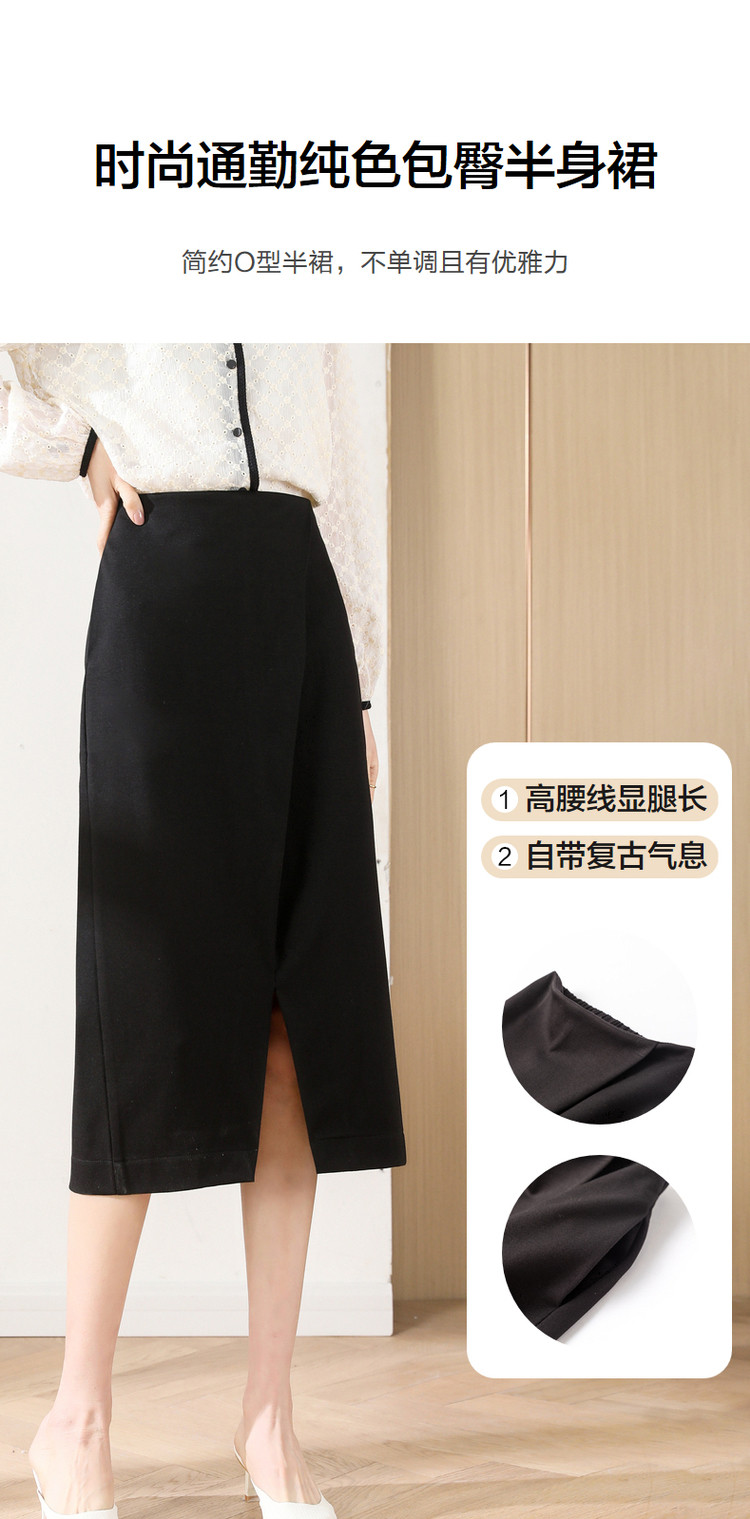商品名称:【开衩工艺】春秋通勤松紧腰半裙0型包臀半身裙女中长款 979329