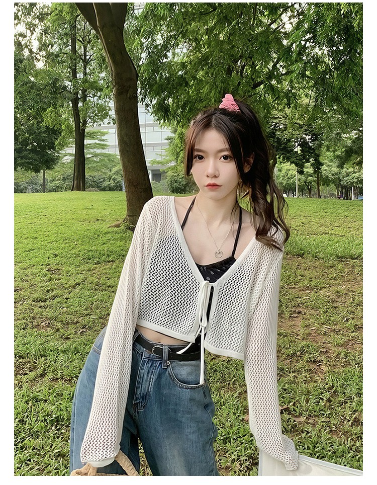 V领薄款镂空空调衫女百搭优雅甜美长袖针织外套 234307